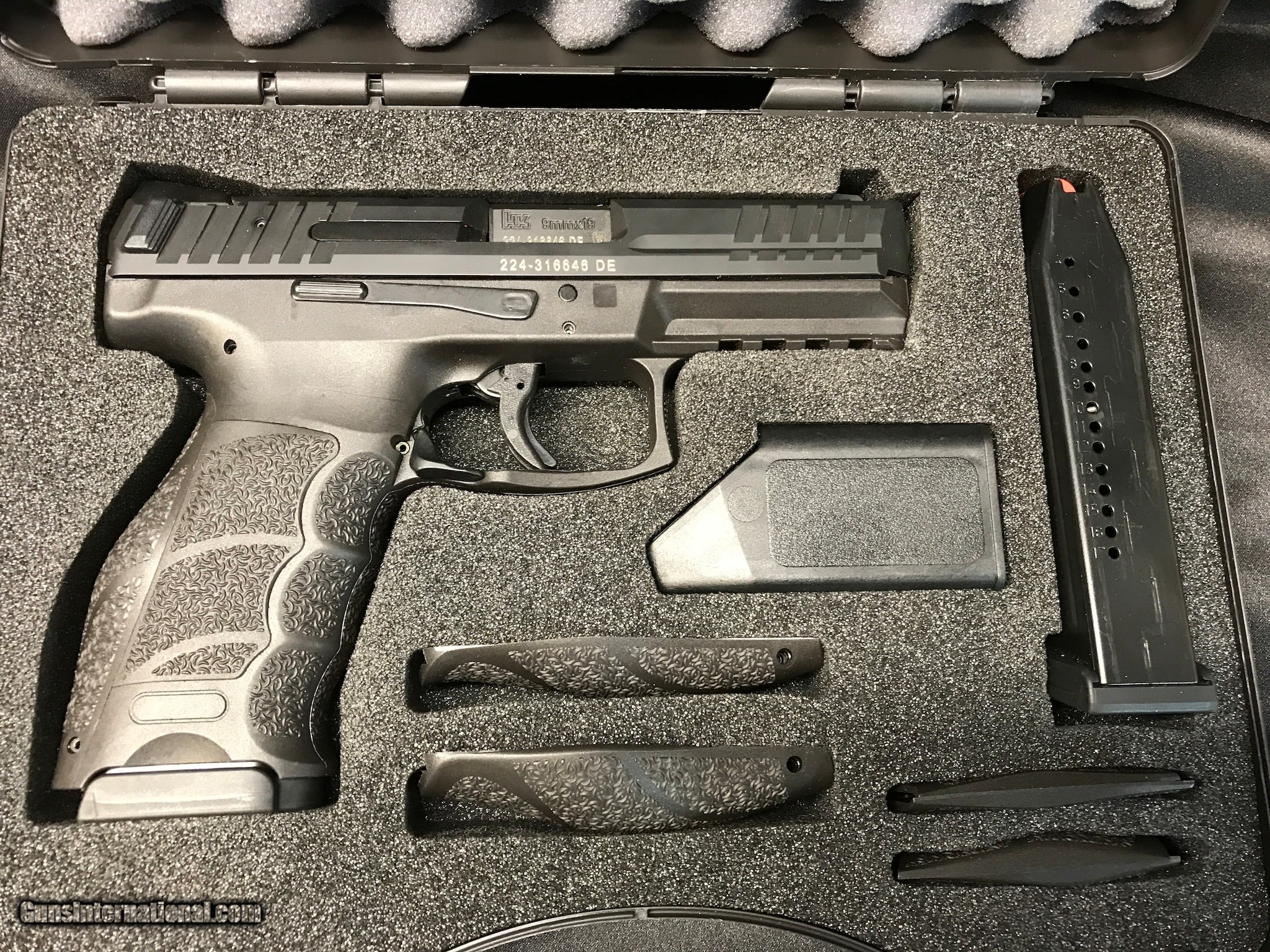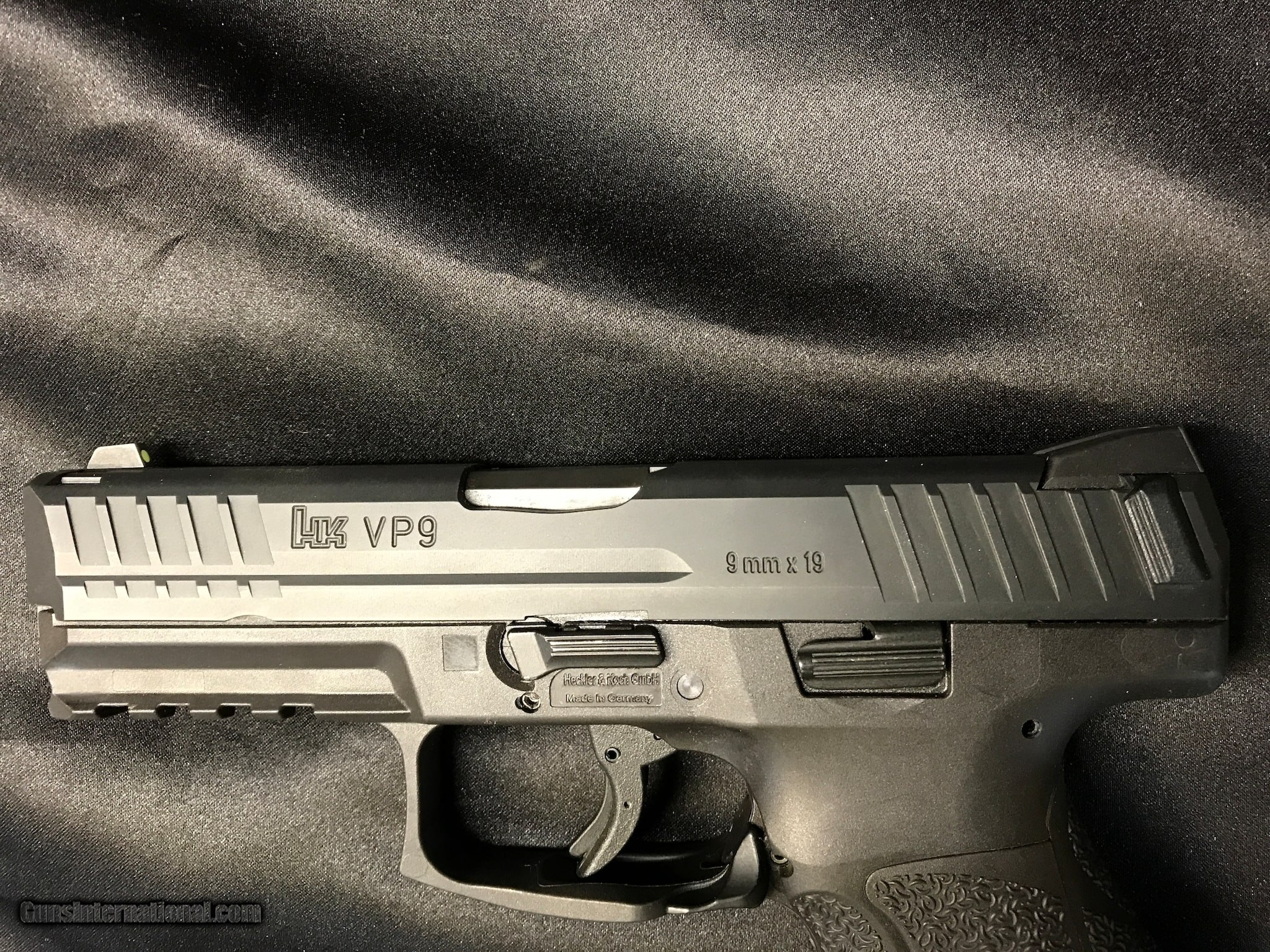 Description: Guns Listing ID: 77233 The VP Series is Heckler & Koch‚‚s first striker-fired HK since the P7 series pistols introduced in the 1980s. It is well-suited for civilian sport shooting, security, military, and law enforcement use. The VP Series integrates a striker firing system with an enhanced, HK \"light pull\" trigger. HK‚‚s cold hammer-forged barrel made from cannon grade steel ensures long service life, as does the polygonal bore profile which also provides a slight increase in muzzle velocity. The VP uses HK‚‚s ergonomic handgun grip design that includes three changeable backstraps and six side panels, accommodating all hand sizes. Molded finger grooves in the pistol‚‚s grip position an operator‚‚s hand for optimal shooting. An extended Picatinny MIL-STD-1913 rail molded into its polymer frame for mounting lights and accessories. All controls are completely ambidextrous. A unique VP feature is HK‚‚s patented rear-mounted charging supports on each side of the slide provide better gripping leverage for racking the slide rearward. The machined steel slide is protected from corrosion and wear by HK‚‚s hostile environment finish and all metal components, including springs and pins have superior metallurgy. VP pistols use proven HK P30 steel mag SOLD Manufacturer: HECKLER & KOCH Model: VP9 Caliber Info: 9MM LUGER (9X19 PARA) Condition: new Barrels: 4 BARREL Finish: BLACK |