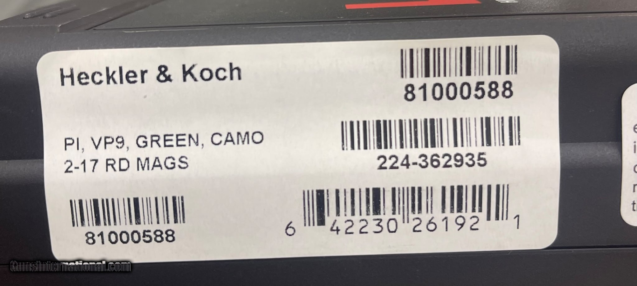 Description: Guns Listing ID: 633317 never fired - shop display Lipseys exclusive reasonable offers considered be safe thank you SOLD Manufacturer: HECKLER & KOCH Model: VP9 Caliber Info: 9MM LUGER (9X19 PARA) Condition: Used - Non-Certified Barrels: 4.1" barrel Finish: CAMO |