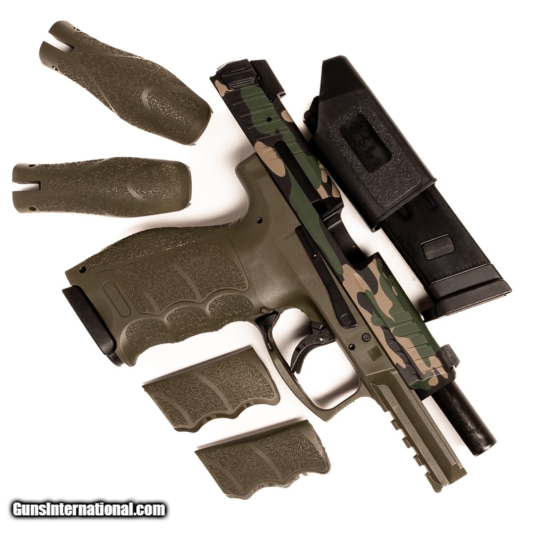 Description: Guns Listing ID: 828056 Experience gained by HK engineers with the P30 hammer-fired pistol had a direct influence on the design of the VP9, but the VP9 breaks new ground with its integration of a unique striker firing system with an enhanced HK “light pull” trigger. Theresult is a pistol with custom-fit ergonomics and trigger quality unequaled in any production striker fired handgun. The H&K VP9 is well-equipped for personal protection whether you’re defending your loved ones at home or a tactical professional abroad. 2-10 round magazines, the original case, manual backstraps, and a loader are included. Get the best bang for your buck when you get a Certified Used Firearm . When you see the Certified Used stamp on any of our firearms, you can be confident that you’re getting exactly what you want – a gun only in very good to excellent condition and held to the highest quality standard. All Certified Used Guns come with a ‘no questions asked’ return policy . PLUS, ALL CERTIFIED USED GUNS SHIP FREE! SOLD Manufacturer: HECKLER & KOCH Model: VP9 Caliber Info: 9MM LUGER (9X19 PARA) Condition: Used - Certified Barrels: 4 BARREL Finish: GREEN CAMO |