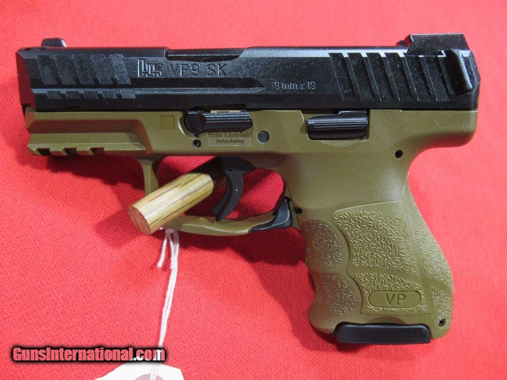 Description: Heckler & Koch VP9SK features: cocking serrations on the front and rear of the slide, interchangeable back strap and grip panels for a customized feel, striker fire, ambidextrous slide release, accessory rail on the frame. This firearm comes with 2-10 round magazines and 1-13 round magazine. Flat Dark Earth frame. Factory night sights. SOLD |