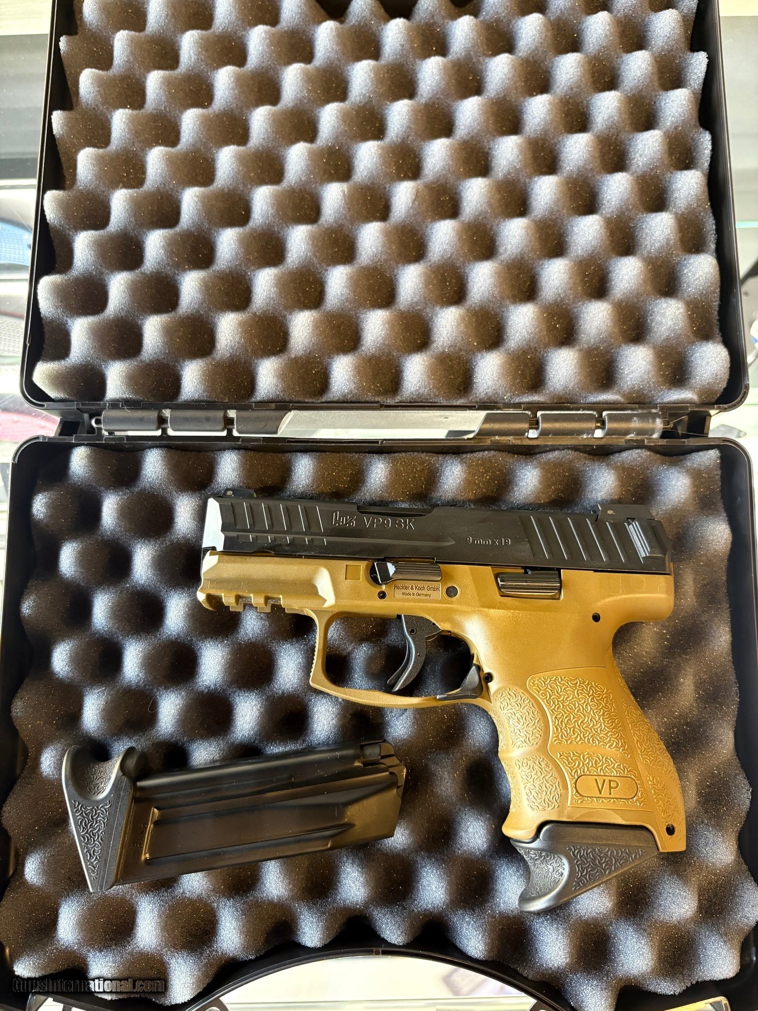Description: Guns Listing ID: 574968 - EXCELLENT CONDITION - ORIGINAL BOX - TWO 10-ROUND MAGAZINES SOLD Manufacturer: HECKLER & KOCH Model: VP9SK Caliber Info: 9MM LUGER (9x19 PARA) Condition: Used - Non-Certified Barrels: 3" BARREL Action: SEMI AUTOMATIC Finish: black and tan |