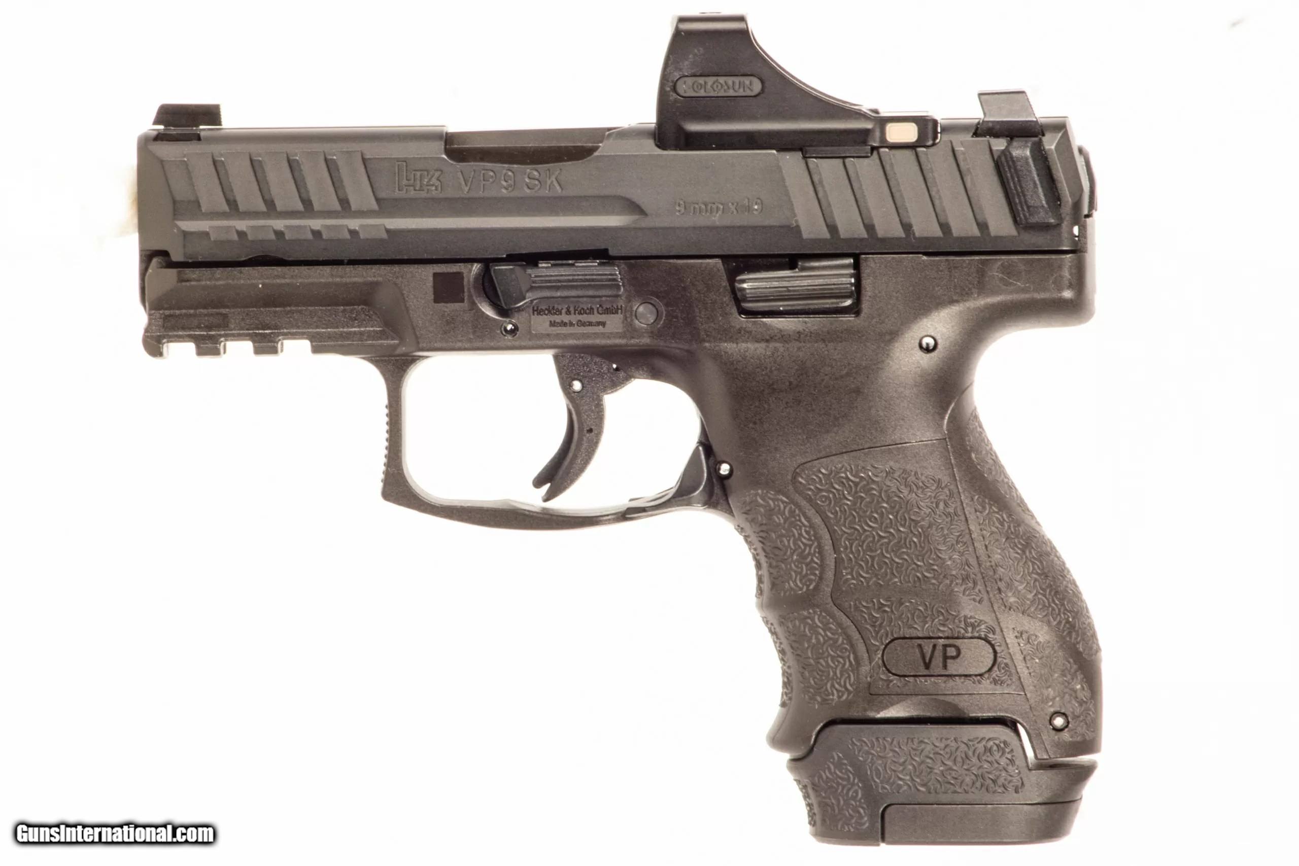 Description: Heckler & Koch model VP9SK, chambered in 9mm. This pistol sports a 3 3/8 inch barrel and features a bright bore and well defined rifling. This gun comes with a case, Holosun red dot sight and one extra magazine. The NRA grading condition for this USED firearm is Excellent. Dury's Lifetime Warranty: All firearms purchased from Dury’s Gun Shop, NEW or USED, are covered by a lifetime warranty. We will repair or replace, at our discretion, any firearm purchased from Dury’s Gun Shop, Inc. for as long as it is owned by the purchaser. This warranty is not transferable. WE BUY GUNS! NO COLLECTION TOO BIG OR SMALL FOR OUR INTERNATIONAL CUSTOMERS ALL OF OUR FIREARMS CAN BE PURCHASED DIRECTLY FROM OUR DURY'S GUNS SITE ! SOLD Manufacturer: H&K Model: VP9SK Caliber Info: 9 mm Barrels: 3inches |