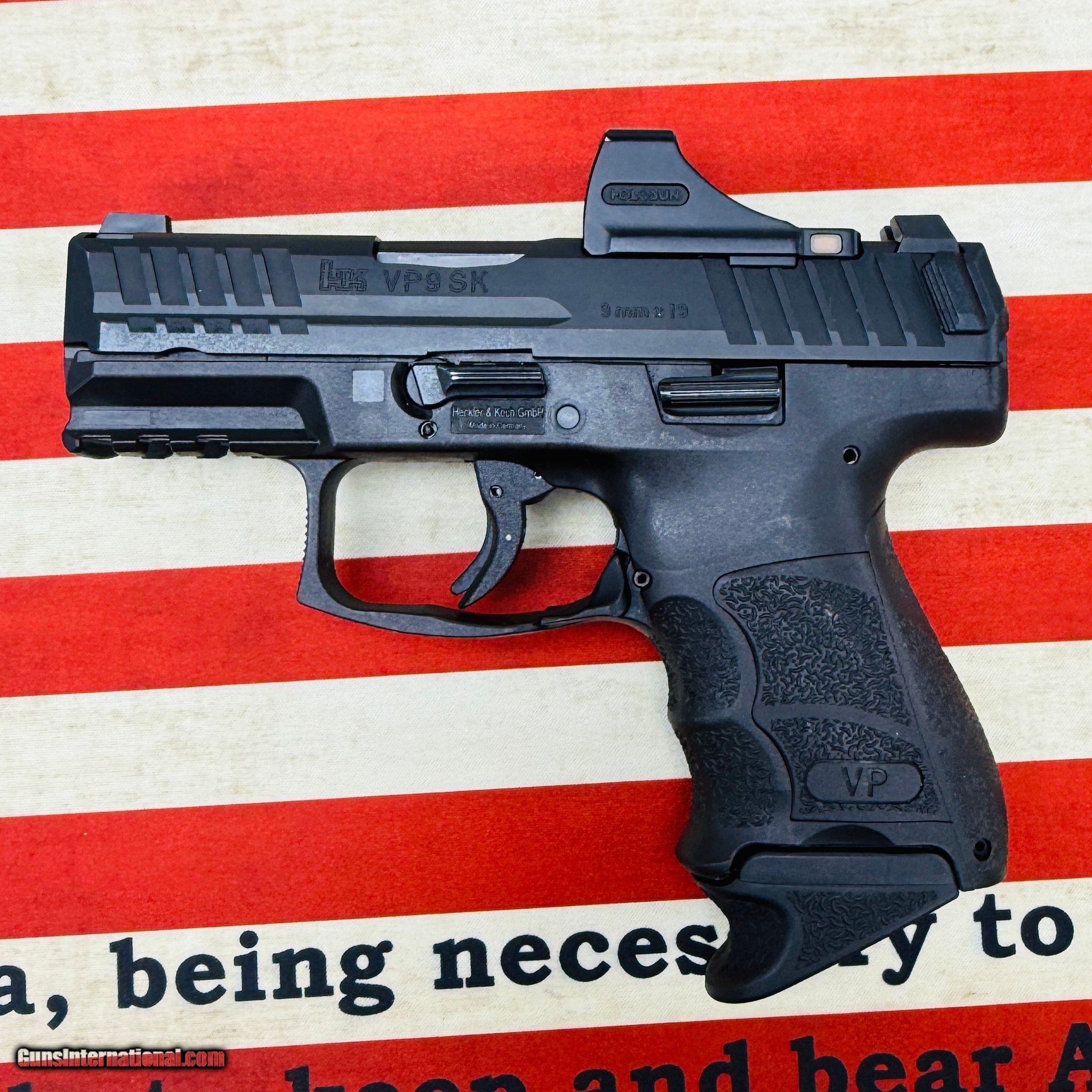Description: Guns Listing ID: 497594 This practically new HK VP9SK (Model 81000804) is a compact powerhouse that brings legendary Heckler & Koch precision to the concealed carry world. This premium package includes a cutting-edge Holosun Super Green SCS-MOS optic and a full loadout of OEM magazines, making it a turnkey solution for serious shooters. Elite Features & Upgrades: ? Factory Optics-Ready Slide – Ready for action, now paired with the Holosun Super Green SCS-MOS, delivering crystal-clear sight acquisition, auto-adjust brightness, and solar fail-safe technology for unmatched reliability. ? HK’s Renowned Ergonomics – The VP9SK’s grip is second to none, offering a fully customizable fit with interchangeable backstraps and side panels for a truly personalized feel. ? Crisp HK Trigger – One of the finest striker-fired triggers on the market, with a light, clean break and short reset for precision shooting. ? Total of 6 OEM Magazines: 1x 12-round magazine – Perfect for deep concealment without sacrificing capacity. 3x 15-round magazines – The ideal balance of capacity and control. 2x 17-round magazines – Maximum firepower for range time or duty use. The Ultimate Carry & Range Package Whether you’re looking for a concealed carry pistol with a best-in-class trigger, a high-capacity defensive firearm, or a competition-ready setup, this VP9SK delivers in every way. ?? HK engineering. Optic-enhanced. Fully loaded. ?? Don’t miss out on this premium VP9SK package, ready to go right out of the box! All used firearms listed are verified to be in working and firing condition at the time of listing. These firearms are sold"\"as is,\" with no warranties, expressed or implied. Buyers are responsible for ensuring the firea‚m‚‚s safety and suitability for use by having it inspected by a qualified gunsmith prior to firing SOLD Manufacturer: HECKLER & KOCH Model: VP9SK (SCS PACKAGE) Caliber Info: 9MM LUGER (9X19 PARA) Condition: Used - Non-Certified Barrels: 3.39 BARREL Action: STRIKER Finish: BLACK Weight: 1.44 lbs. |