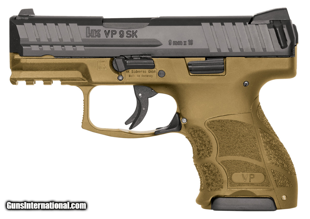 Description: Guns Listing ID: 13602 The VP Series is Heckler Kochs first striker-fired HK since the P7 series pistols introduced in the 1980s. It is well-suited for civilian sport shooting security military and law enforcement use. The VP Series integrates a striker firing system with an enhanced HK light pull trigger. HKs cold hammer-forged barrel made from cannon grade steel ensures long service life as does the polygonal bore profile which also provides a slight increase in muzzle velocity. Slide releases are present on both sides of the frame and the paddle-style magazine release can be easily activated by left- or right-handed shooters. A unique VP feature is HKs patented rear-mounted charging supports on each side of the slide provide better gripping leverage for racking the slide rearward. The machined steel slide is protected from corrosion and wear by HKs hostile environment finish and all metal components including springs and pins have superior metallurgy. VP SK subcompact models feature a more concealable design with a shorter barrel abbreviated Picatinny MIL-STD-1913 rail and a compact grip frame which retains the adjustable VP grip feature of interchangeable backstraps and lateral grip panels. This model features a FDE frame with black slide. It comes equipped with 3-Dot sights and includes one flat base and one extended floorplate 10-round magazine. Part No. 81000095, UPC 642230257146 – VP9SK FDE, 9mm with 1 flat and 1 extended floorplate 10 round magazines SOLD Manufacturer: HECKLER & KOCH Model: VP9SK Caliber Info: 9MM LUGER (9X19 PARA) Condition: new Barrels: 3.39 BARREL |