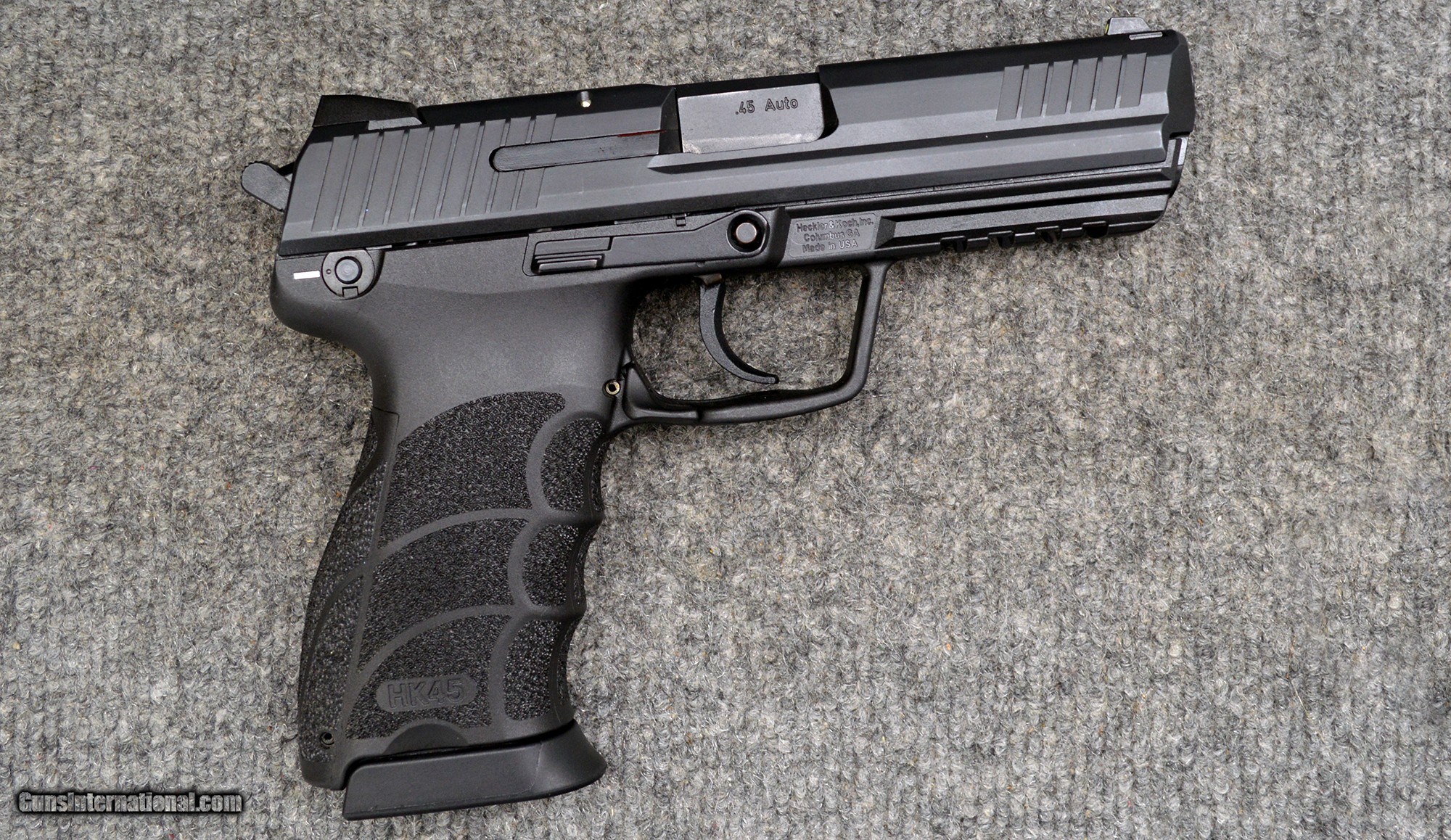 Description: For your consideration, a Heckler & Koch HK45 chambered in .45 Auto. Features include forward cocking serrations, ambidextrous slide and magazine releases, and interchangeable backstraps. Sighting consists of a set of non-tritium, glow-in-the-dark night sights. This piece features the V1 trigger mechanism, is of American manufacture, and dates to 2021. .45 Auto SOLD Metal Condition: Excellent Wood Condition: Excellent Bore Condition: Excellent Barrels: 4.5 Triggers: Serrated Face Fore End: Picatinny Rail Weight: 1.5 lbs Sights: Iron Sights Item Location: Hamburg, PA |