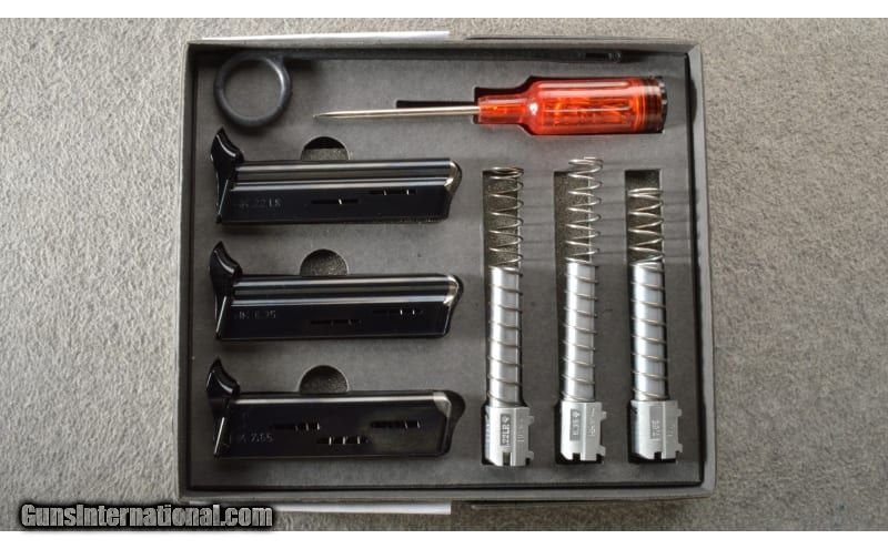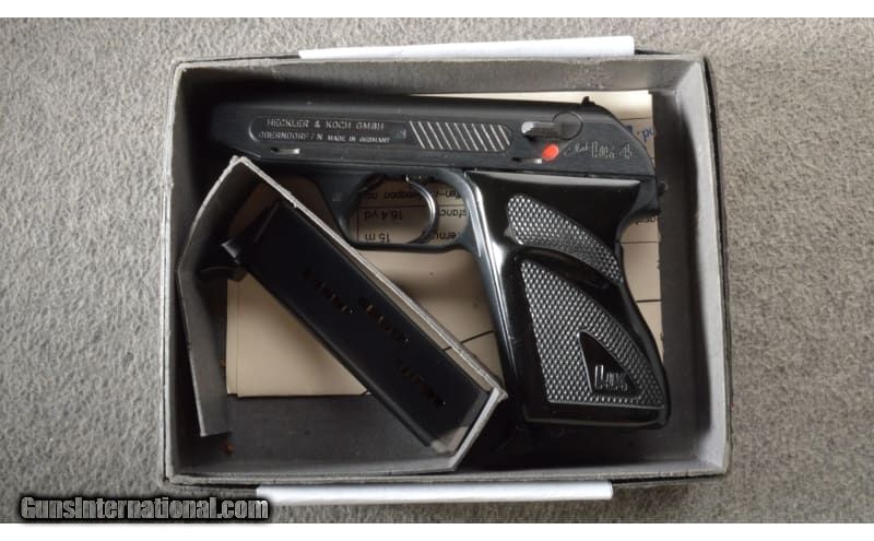 Description: As new HK Mod4 with two magazines. Comes with a boxed conversion kit with three barrels and three magazines: calibers 6.35 mm, 7.65 mm and .22 LR, 9 mm Kurz. This is the complete shooting kit that allows you to shoot all four of the most popular pocket pistol calibers. Box 1 is the pistol with two 9 mm kurz magazines. Box, 2 has a three barrel and magazine conversion kit. .380 ACP SOLD Chambers: Semi auto. Metal Condition: As new. Bore Condition: As new. Barrels: 3.25" barrel. Triggers: Single (DA/SA). Weight: 1 lbs Sights: Fixed. Item Location: Owatonna, MN |