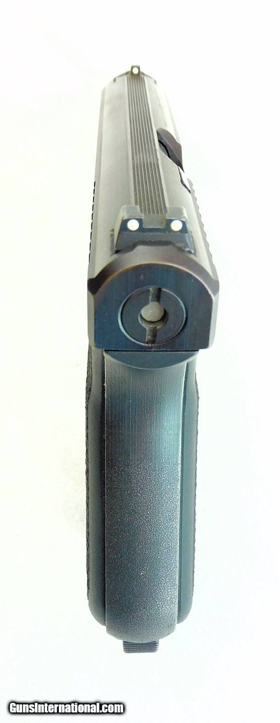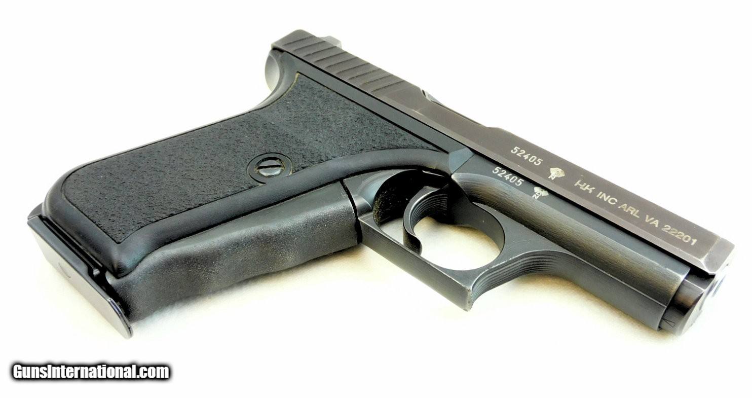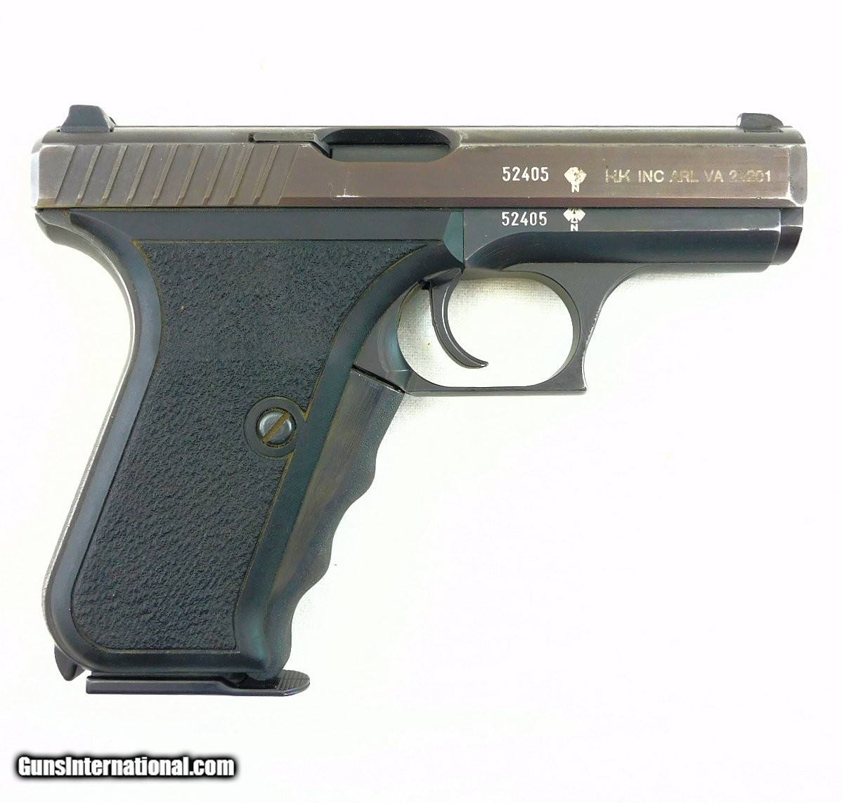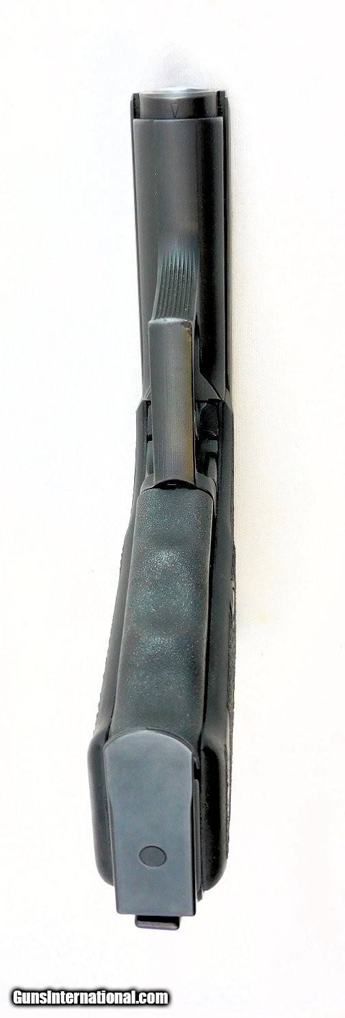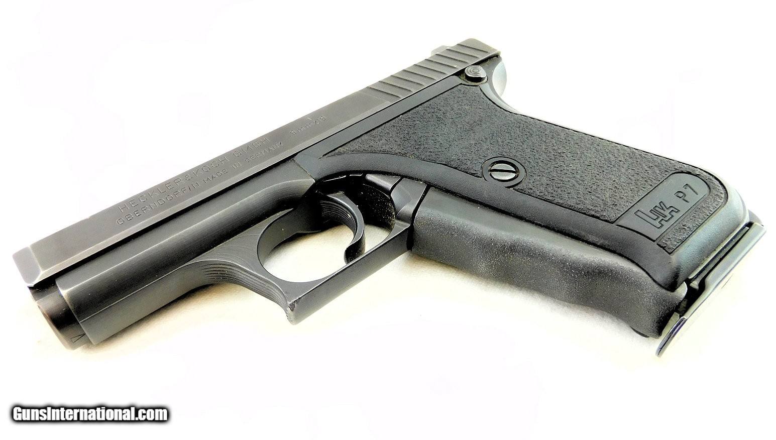 Description: Striking HK P7 PSP MFG 1983 9MM W/Box, 4" bbl, three dot sights, blued finish, ambidextrous magazine release, cocking lever in front of grip, serrated trigger - trigger guard, black textured HK P7 grips, two 8 round magazines, cleaning tool, and documentation. What a find! Add 3% for Credit Card Shipping $35.00 in the lower 48 SOLD |