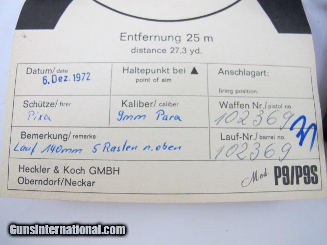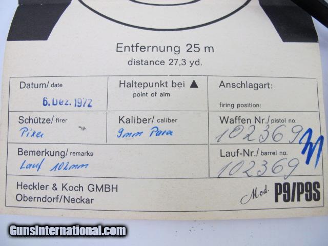 HK P9S 9MM Pre "Sport Group" 1972 RARE Heckler Koch