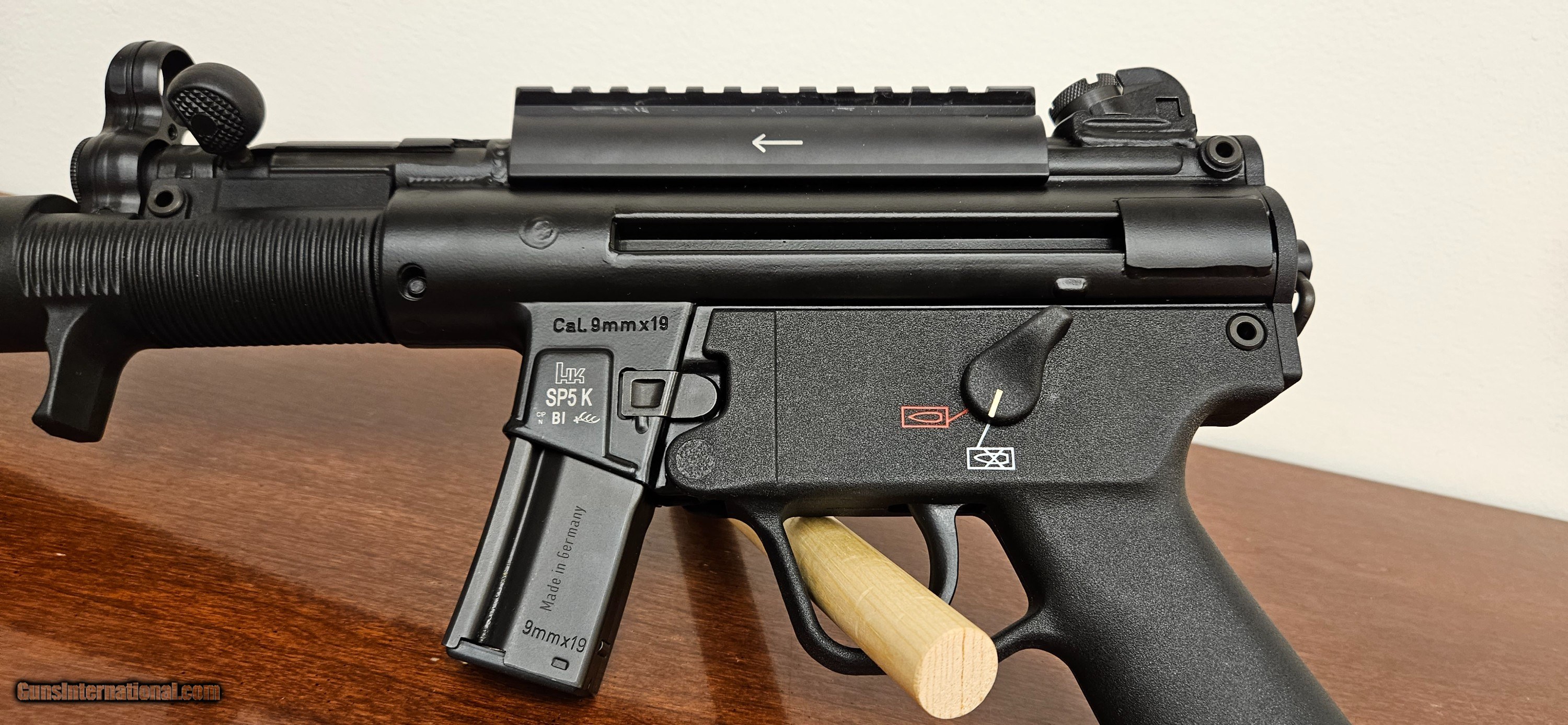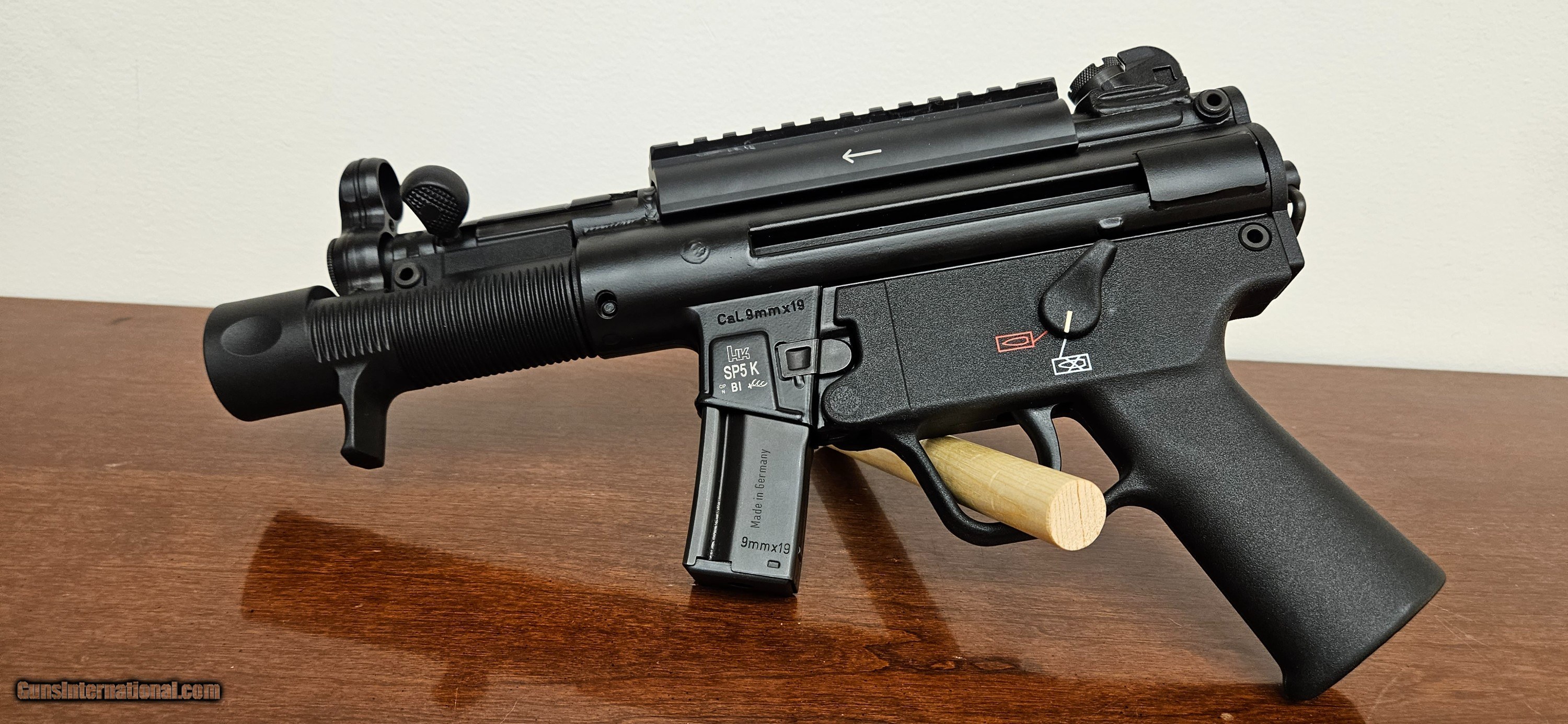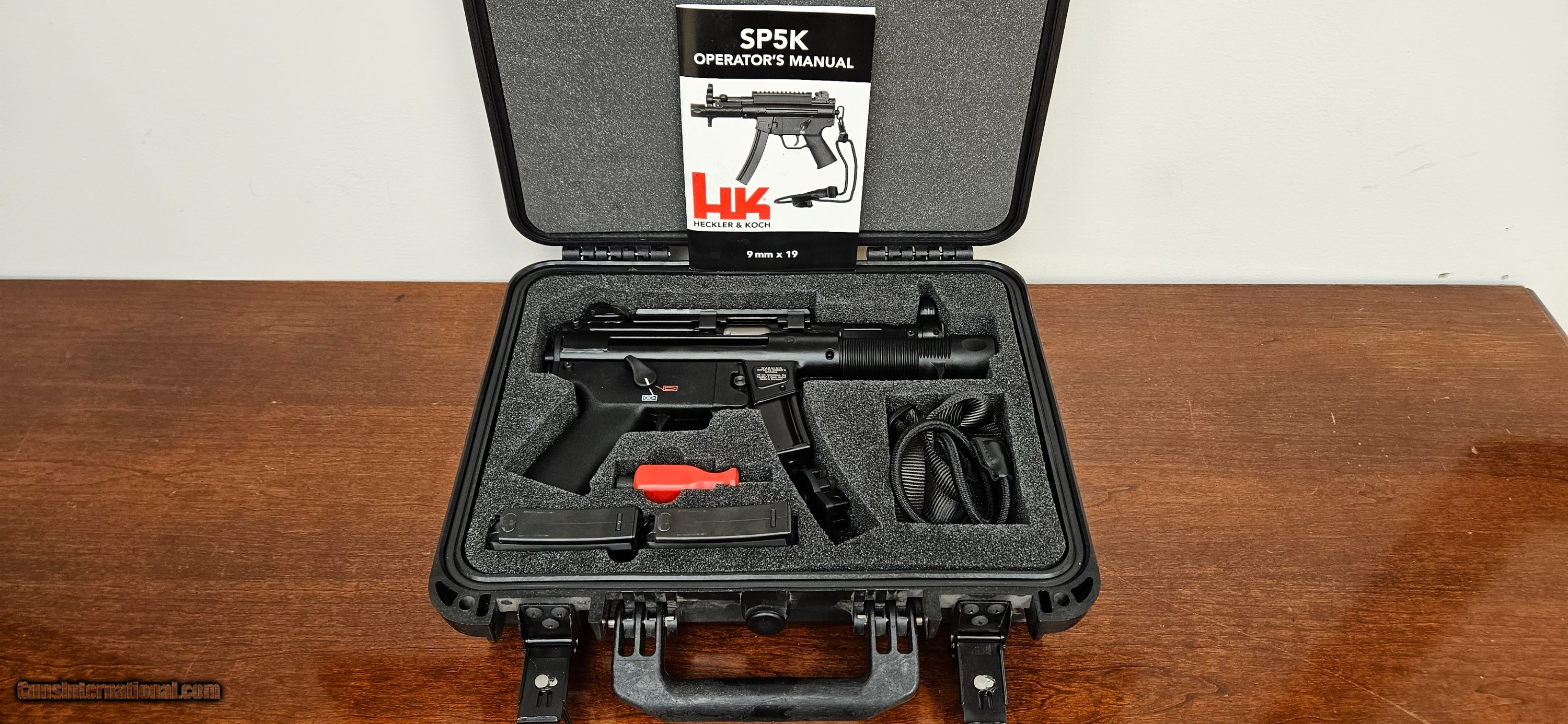 Description: Up for sale is a Heckler & Koch SP5K pistol. This pistol comes with the original hard case, three 20 round magazines, one bungee sling, one extra aftermarket end cap, a tool, and the original paperwork. This firearm has seen very little use and is in very good condition. Internet sales are managed 10am to 6pm MST M-F. Our inventory listed for sale is not live, meaning just because you click “BUY NOW” doesn’t mean you have purchased the firearm. We consider a sale final once we have received payment. All our listings are also available for sale in our retail store. Shipping starts at $75 for long guns and $50 for handguns We ship to the contiguous United States and Alaska, with some state law restrictions. SOLD Handgun Caliber: 9x19mm Parabellum (9mm Luger, 9x19mm NATO) Manufacturer: H&K Model: SP5K Item Location: Lakewood, Co |