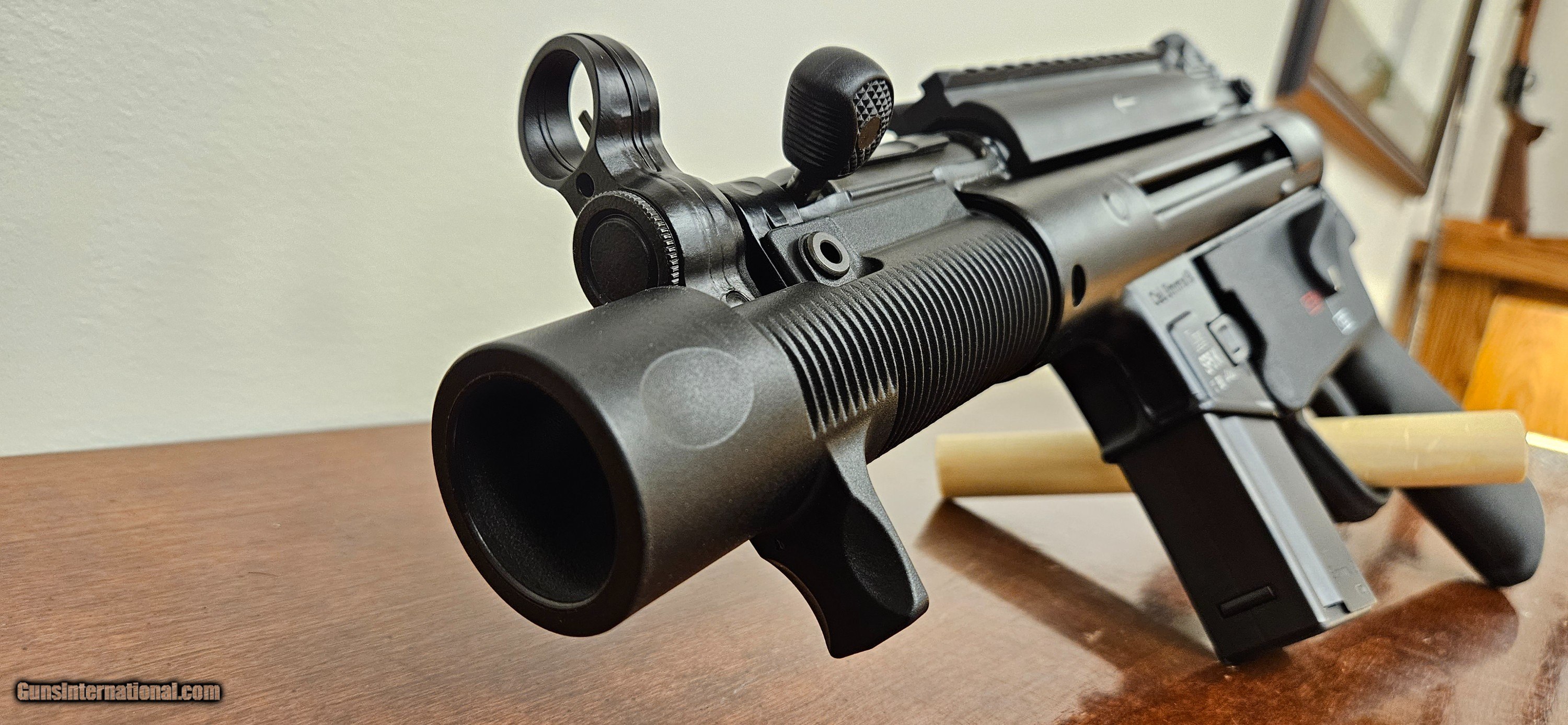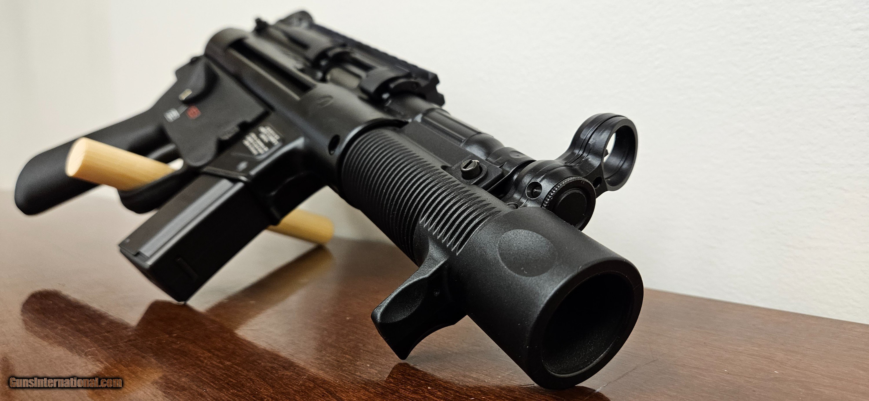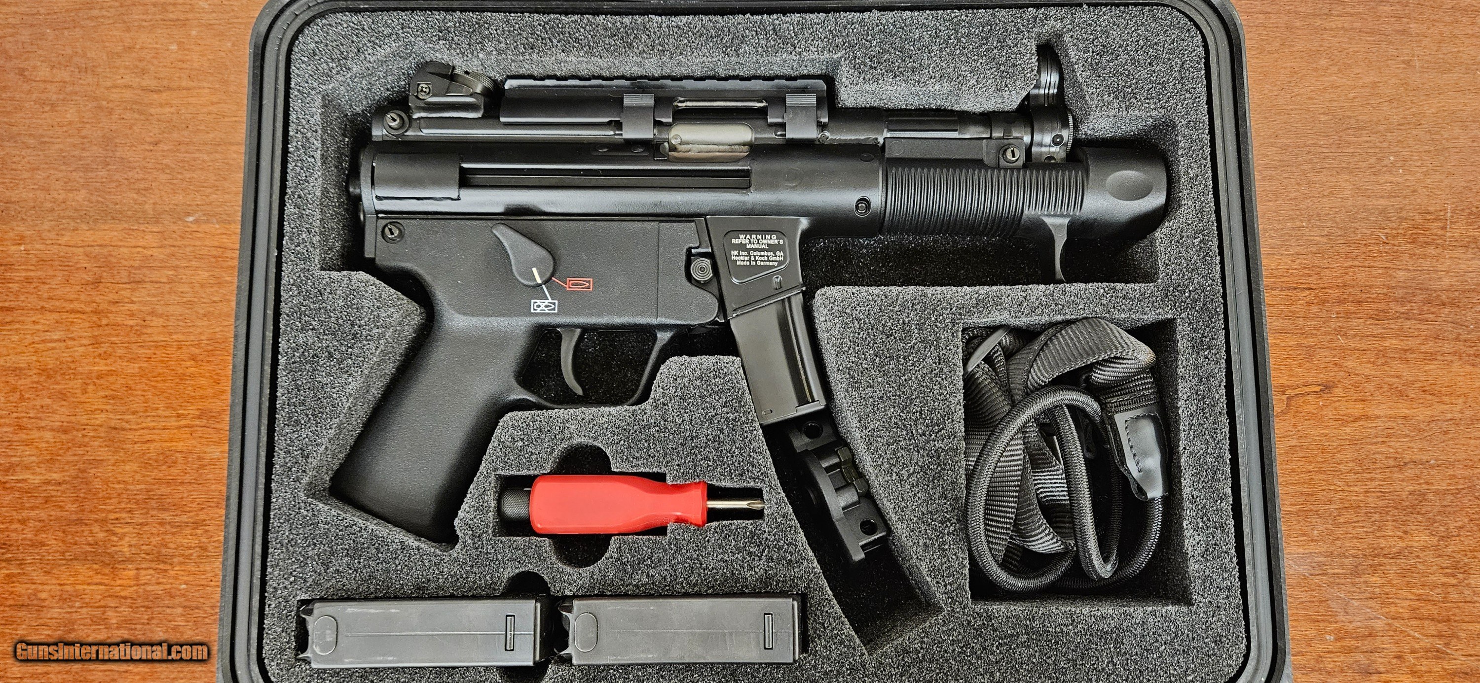 Description: Up for sale is a Heckler & Koch SP5K pistol. This pistol comes with the original hard case, three 20 round magazines, one bungee sling, one extra aftermarket end cap, a tool, and the original paperwork. This firearm has seen very little use and is in very good condition. Internet sales are managed 10am to 6pm MST M-F. Our inventory listed for sale is not live, meaning just because you click “BUY NOW” doesn’t mean you have purchased the firearm. We consider a sale final once we have received payment. All our listings are also available for sale in our retail store. Shipping starts at $75 for long guns and $50 for handguns We ship to the contiguous United States and Alaska, with some state law restrictions. SOLD Handgun Caliber: 9x19mm Parabellum (9mm Luger, 9x19mm NATO) Manufacturer: H&K Model: SP5K Item Location: Lakewood, Co |