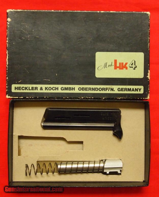 Description: HK4 pistol .22LR conversion kit. It includes the barrel/spring, one mag with extended floor plate. Original Box. Add 3% for credit cards $10.00 S&H SOLD |