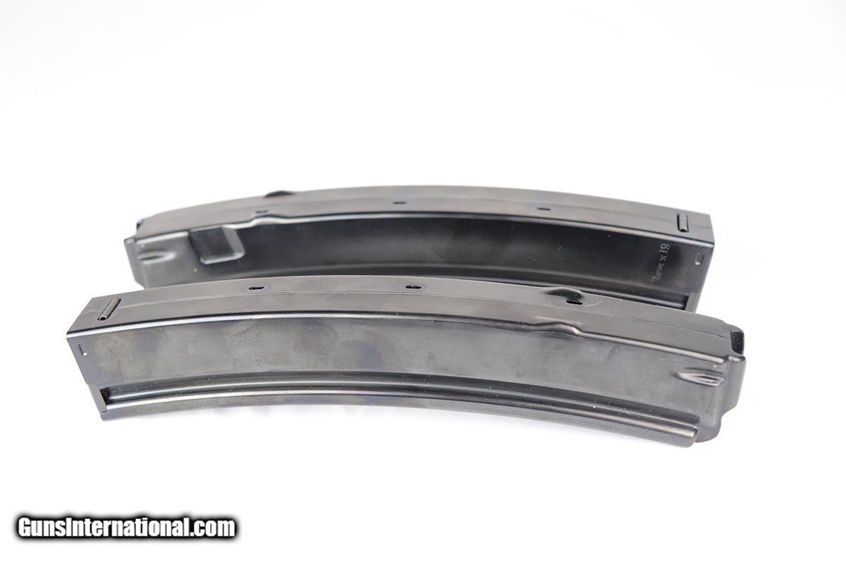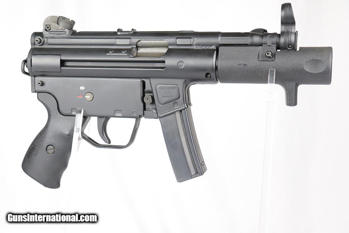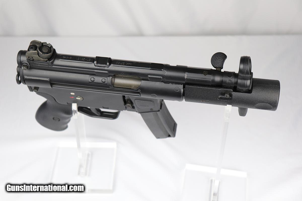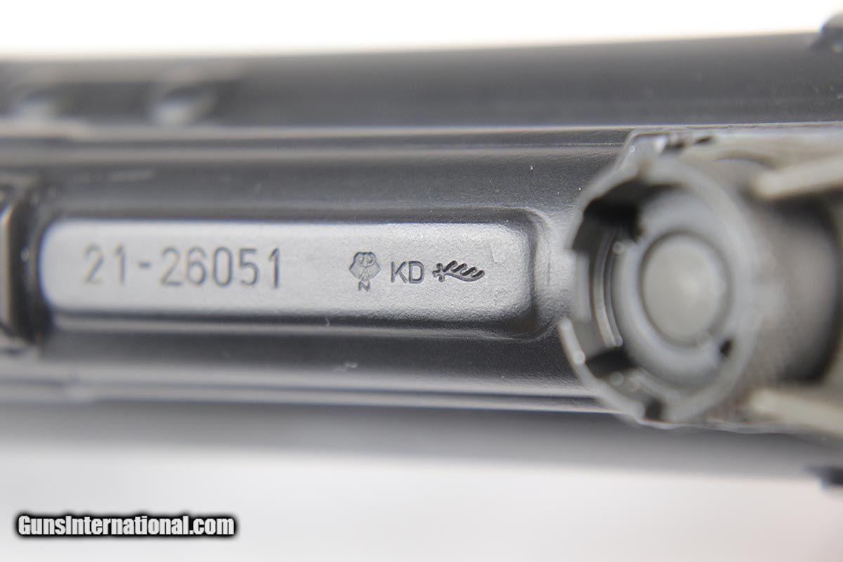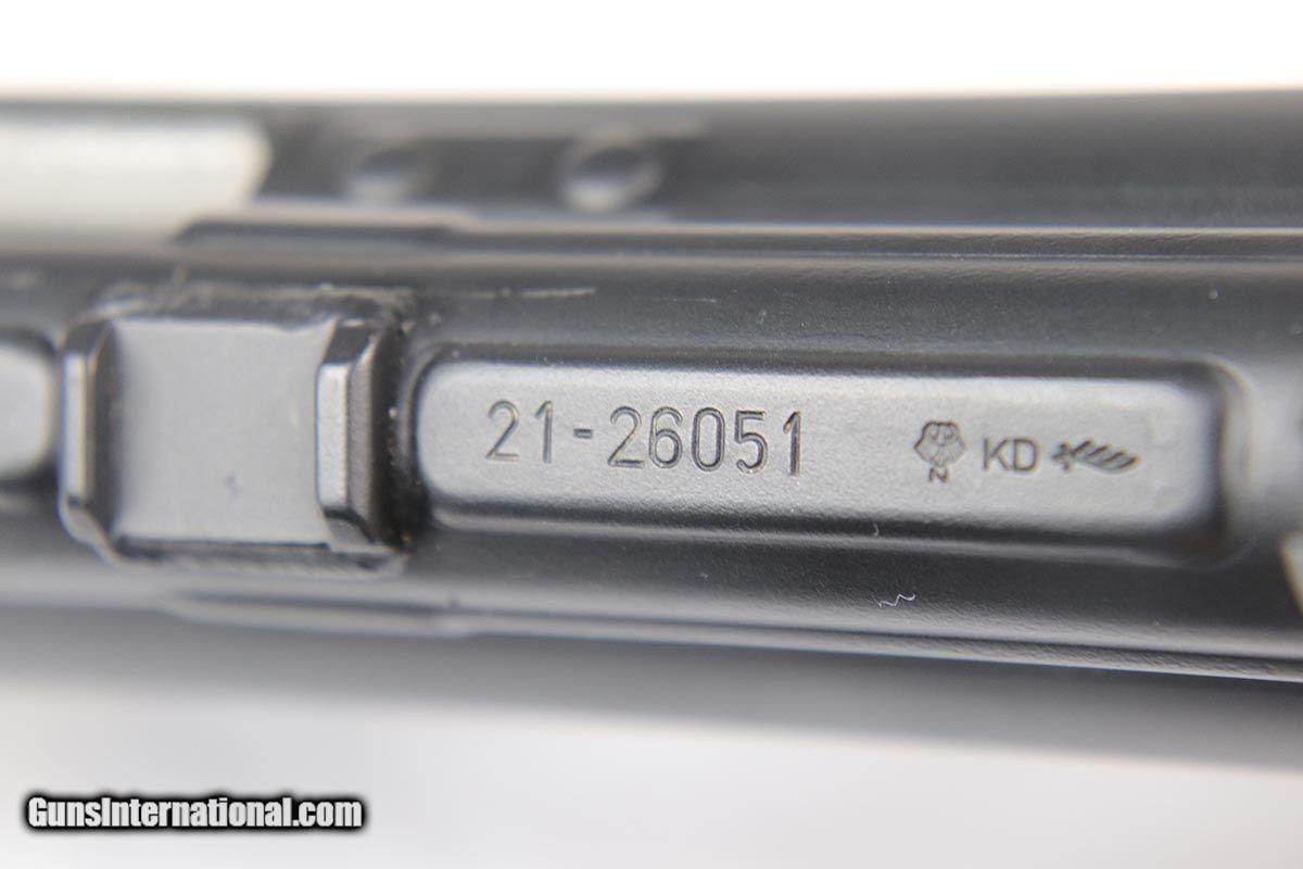Description: This is an “as new” unfired German H&K SP89 pistol, chambered in 9mm Para, which is essentially a semi-auto version of selective fire MP5 pistol and was imported for a short period of time in late 80s and early 90s. The importation was banned in 1994 and no more guns can be brought in to the US. This one is virtually new with no evidence of it being fired. It comes with three mags and a ‘brand new in the box’ brace that attaches to the gun and makes it look super cool! The gun is German proofed and date coded KD on top of the receiver, which represents '93. A great example of hard to find pistol. SOLD Manufacturer: H&K Model: SP89 Serial Number: 21-26051 Caliber Info: 9mm Bore: Mint Condition: Like-New |