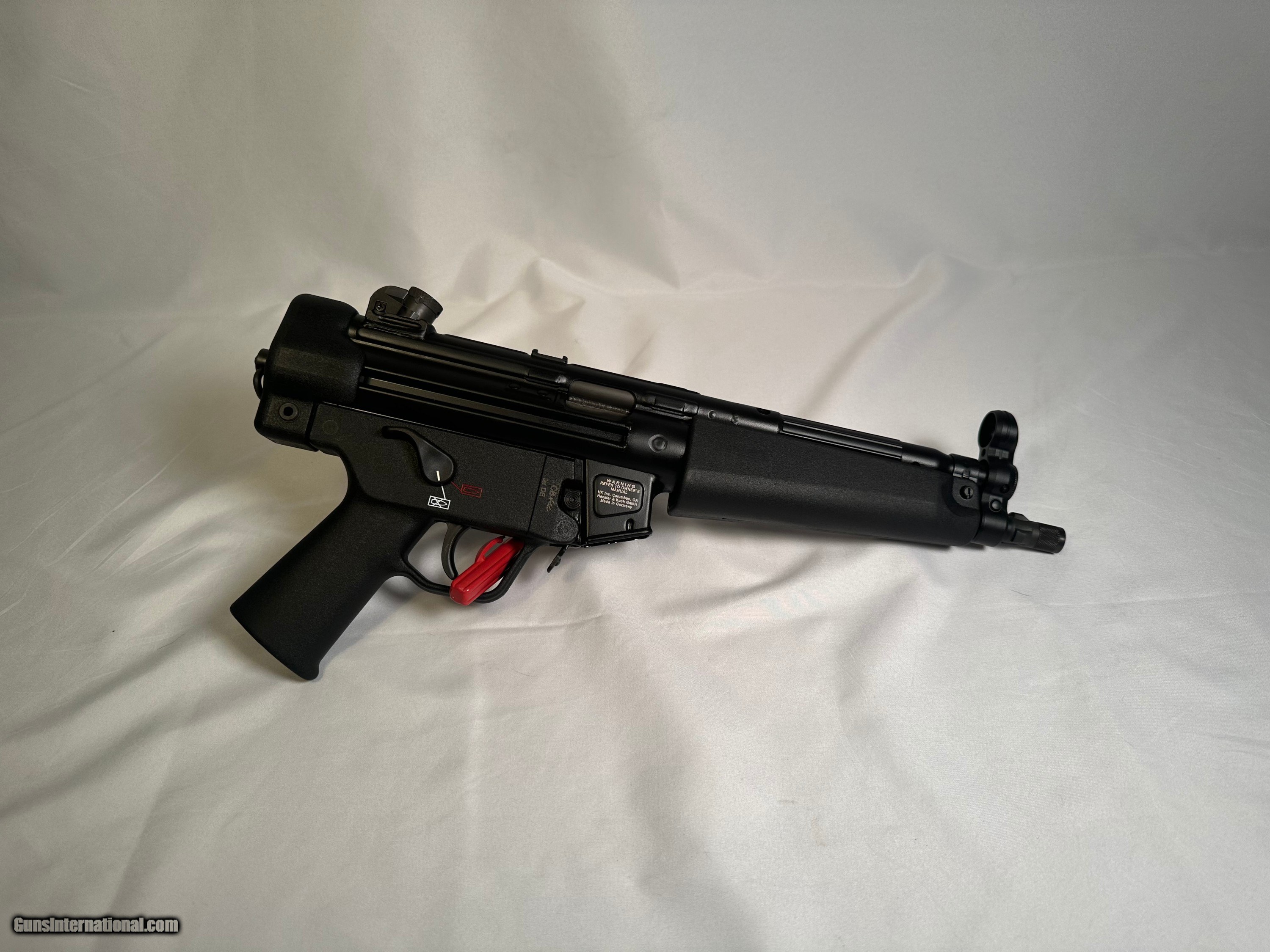 Description: Safe kept and it has never been fired. CaliberLengthHeightBarrel Length9mm17.8 in.8.66 in.8.86 in. + Weight CaliberWeight (without magazine)Magazine Weight Empty9mm5.1 lb30 rd - 6.3 oz/10 rd - 3.5 oz + Other Specifications CaliberMagazine CapacityTrigger PullTrigger TravelReturn TravelBarrel Profile/Twist9mm30/15/106.74-10.11 pounds-force / 30-45 N.24 in..12 in.Groove/land profile, 6 grooves, right-hand twist SOLD Manufacturer: HK Model: SP5 |