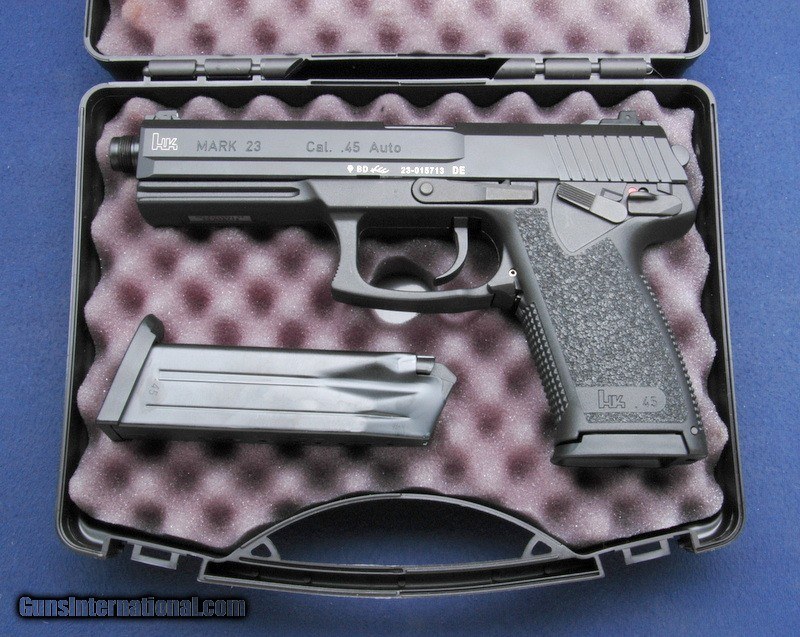 Description: New in the box, this Mark 23 is unfired and virtually untouched. Collector grade, perfect condition, includes original factory numbered hard case, both original new factory 12 round magazines, factory manual and safety lock. Cannot be upgraded. $45 shipping to the lower 48, 3% surcharge for using a CC. If you choose to pay with a personal check, we will hold the item for up to 10 days to make sure that it clears. Please expedite such pymts as we will hold an item on your word for 5 days. SOLD Handgun Caliber: .45 ACP (.45 Auto) |