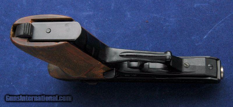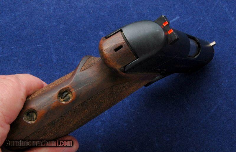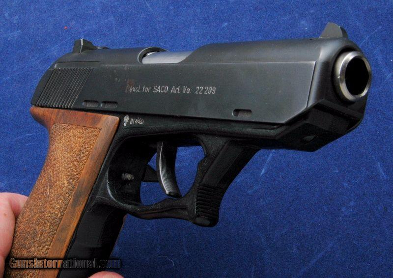 Description: Here is a very hard to find HK P9S chambered in .45 acp. Overall very good condition with a mint bore and wood target grips. Not too many of these around! $35 shipping to the lower 48 and 3% surcharge for using a CC SOLD |