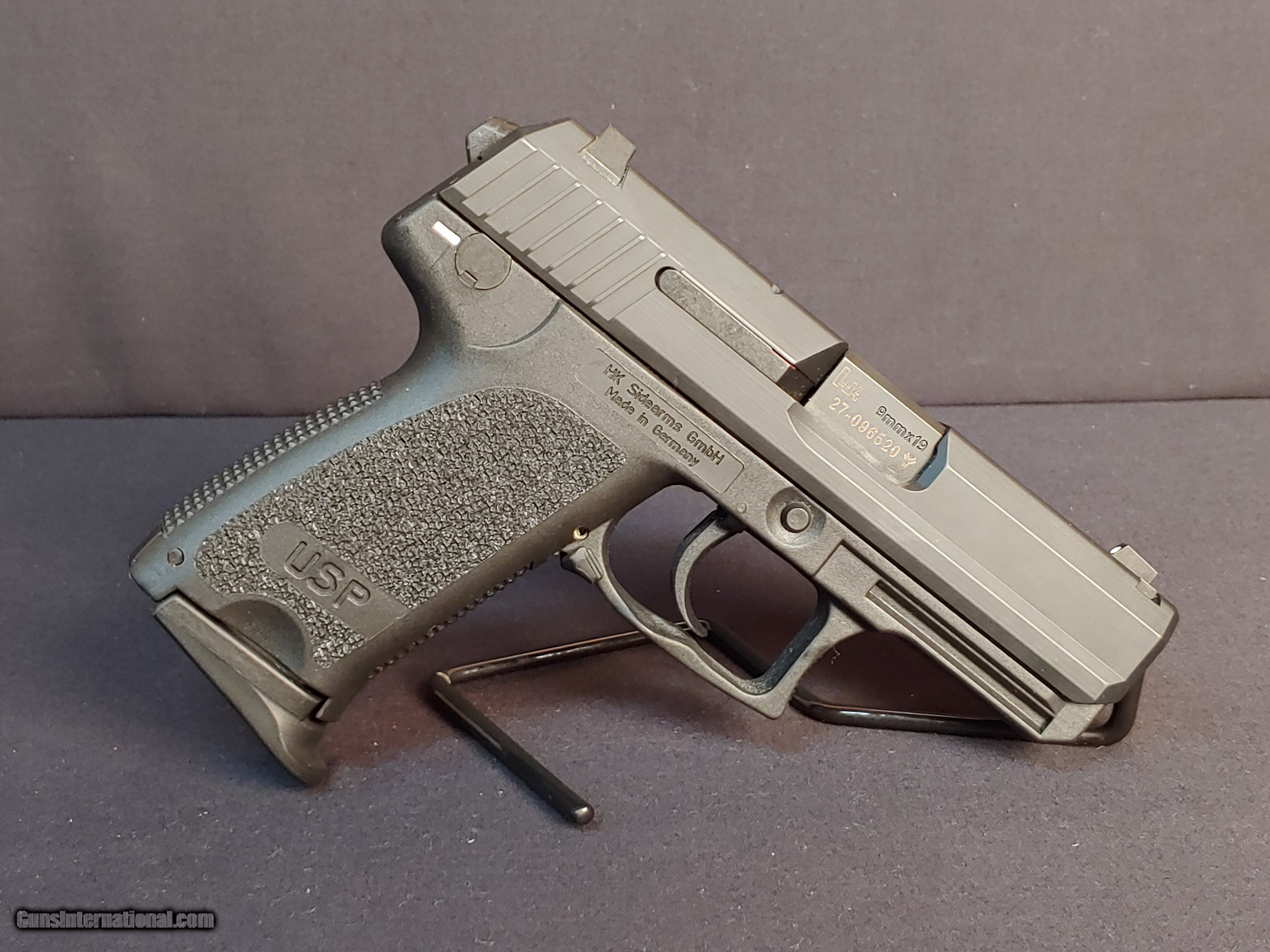 Description: The HK USP Compact is a small frame pistol capable of firing the most powerful cartridges. Based on the full-size USP models, these handy pistols combine compact size with optimum effective shooting performance. USP Compacts are smaller and lighter than large frame USPs. The reduction in trigger reach and grip circumference increases concealability and enhances shooting ergonomics. Unlike some subcompact semiautomatic pistols that use a difficult to shoot "two-finger grip" frame, the USP Compact uses a narrow, full-hand grip frame with a choice of interchangeable extended or flush-fitting magazine floorplates. This makes the pistol easy to shoot without sacrificing concealability. This package comes with two (2) 13 round magazines and the original hard case. The overall condition is excellent with little to no handling marks. Pre-Owned Heckler & Koch USP 9mm Compact 3.5" Handgun