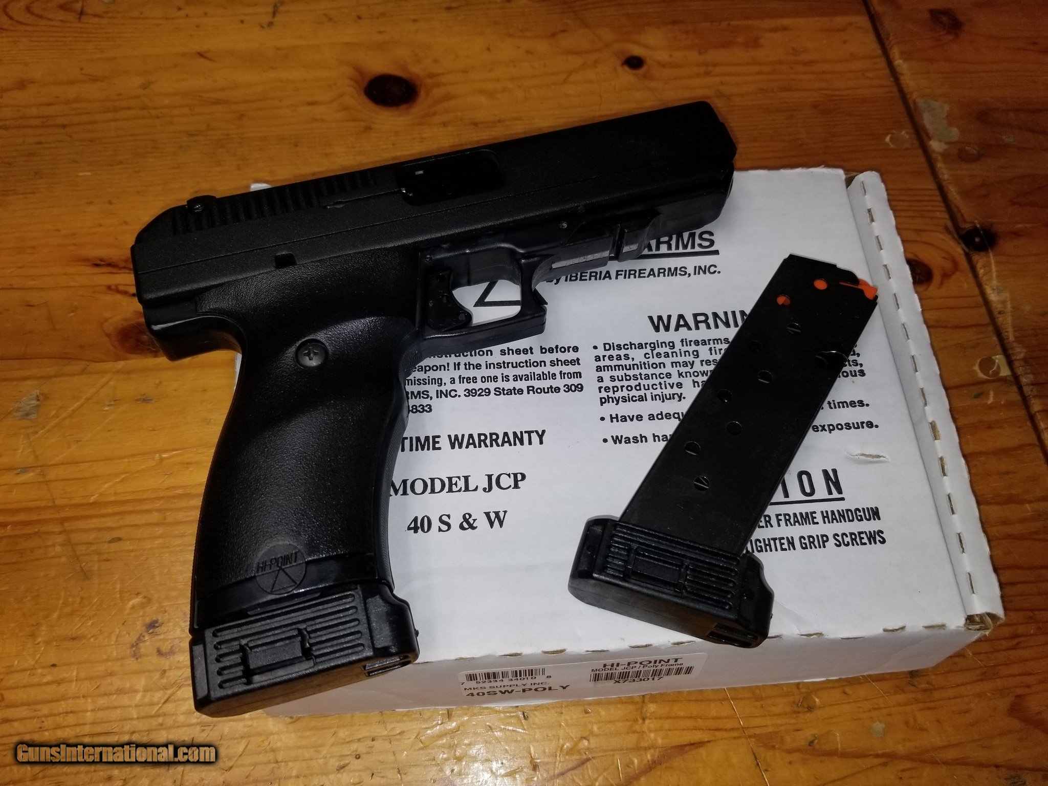 Description: Guns Listing ID: 52233 Made in the United States the Hi-Point 34010 is a semi-automatic pistol chambered in 40 SW and rated for P ammo. With a 4.5 barrel and adorned with adjustable three dot sights the polymer framed 34010 weighs 35 ounces. Locking open after the last round the Hi-Point 34010 also includes a durable easy-grip finish to lock in your hold on this pistol. Details Action DAO - Caliber 40 SW - Capacity 101 - Finish Black - Frame Polymer - Grips Polymer - Sights 3 Dot Adjustable - Barrel Length 4.5 - Overall Length 9.4 - Weight 35 oz. The Hi Point Polymer Pistol is on a larger frame allowing the shooter to enjoy the shooting even more. The Hi Point Polymer Pistol makes it fun to shoot targets small game hunting and protecting lives too. You cant go wrong with a Hi Point Polymer Pistol by your side. SOLD Manufacturer: HI-POINT Model: 34010 Caliber Info: 40 S&W Condition: new Barrels: 4.5 BARREL |