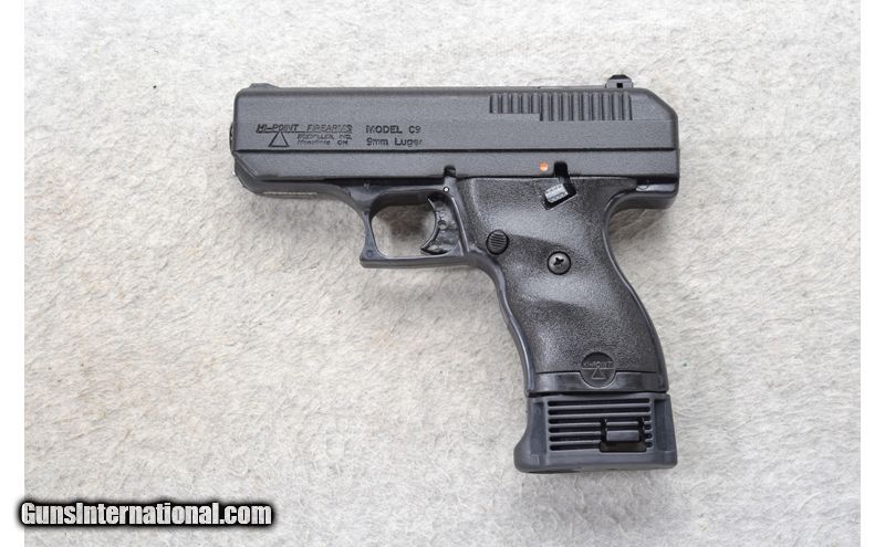 Description: This Hi-Point Model C9 is a right hand semi-auto pistol in 9mm Cal. It has a 3.5 inch barrel with a rear serrated slide. A blade front and adjustable notch rear sight. The grip is a textured black polymer. 9mm Luger SOLD Chambers: Semi-Auto 9 round magazine. Metal Condition: Excellent. Bore Condition: Excellent Barrels: 3.5 inch barrel with a rear serrated slide. Weight: 32 oz. Sights: Blade front. Adjustable notch rear. Item Location: Richfield, WI |