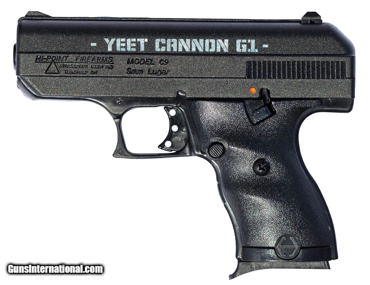 Description: Guns Listing ID: 25457 This Hi-Point Yeet Cannon G1 is an affordably priced semi-automatic handgun chambered in 9mm, one of the most popular handgun calibers. One-hundred percent American-made, this pistol features a high-impact polymer frame and grips with a black powder coat finish. Other features include a last round lock open, quick on-off thumb safety, and adjustable 3-dot sights. The Yeet Cannon G1 is also rated for use with +P ammunition. SOLD Manufacturer: HI-POINT Model: C9 YEET CANNON G1 Caliber Info: 9MM LUGER (9X19 PARA) Condition: new Barrels: 3.5" barrel Finish: BLACK |
