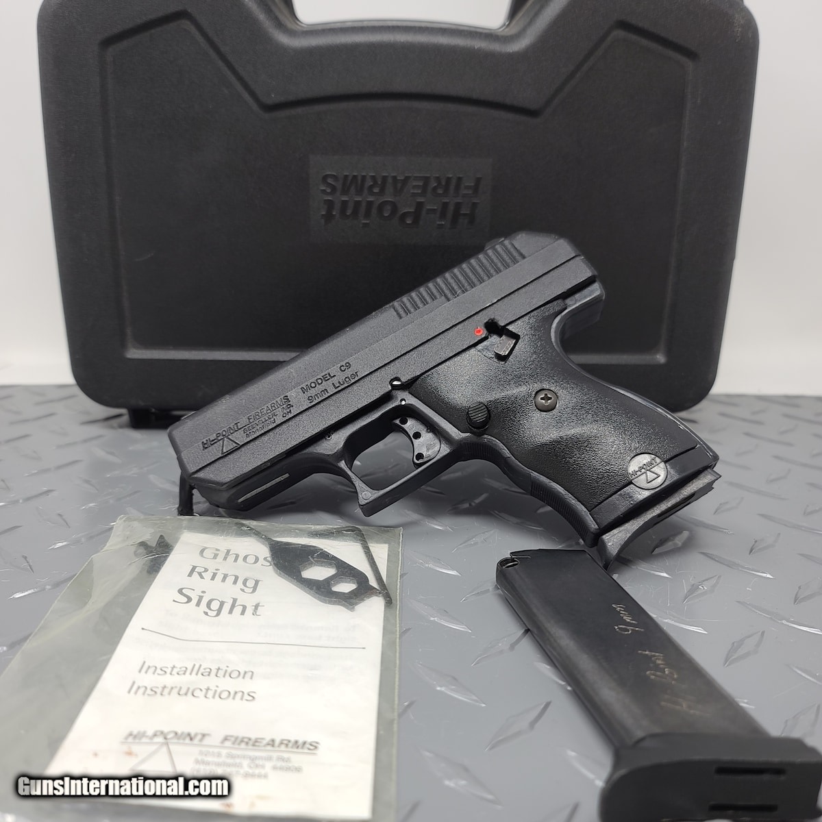 Description: Guns Listing ID: 512153 Used Hi-Point C9 9mm pistol with two magazines, original case and original paperwork. This firearm has wear from general use. SOLD Manufacturer: HI POINT Model: C9 Caliber Info: 9 MM LUGER Condition: Used - Non-Certified Barrels: 4 BARREL |