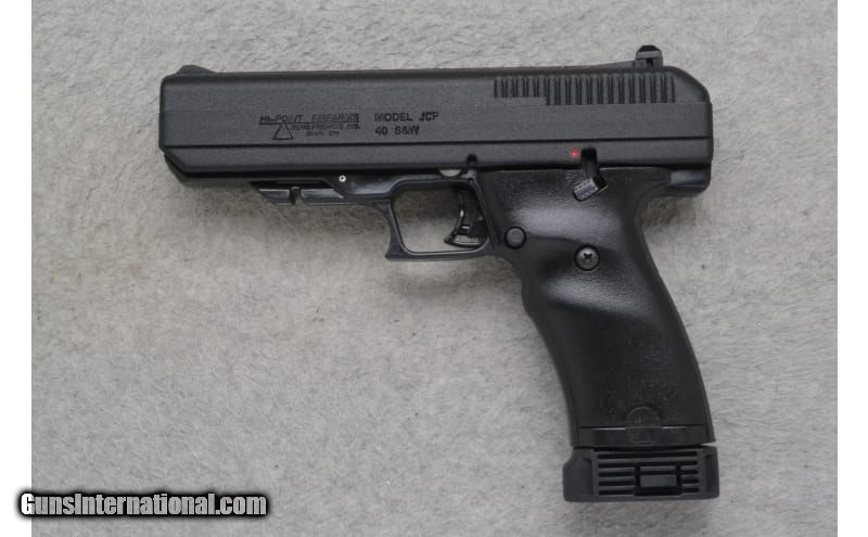 Description: This Hi-Point Model JCP is a right-hand semi auto pistol in .40 S&W Cal. It has a 4.5 inch barrel with rear slide serrations, yellow front sight and orange two dot notch rear sight. The grip is black polymer with finger grooves. It has an external thumb safety and a lower accessory rail. .40 S&W SOLD Barrels: 4.5 inches Weight: 2 lbs 12 oz Item Location: Richfield, WI |