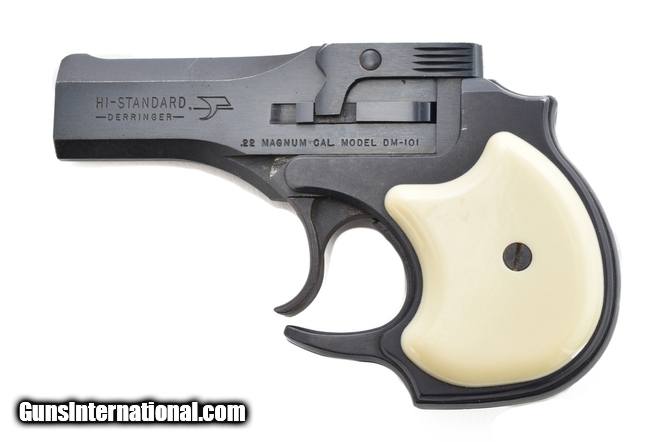 Description: Hi Standard DM-101 .22 Mag caliber Derringer. Magnum double action Derringer in excellent condition.