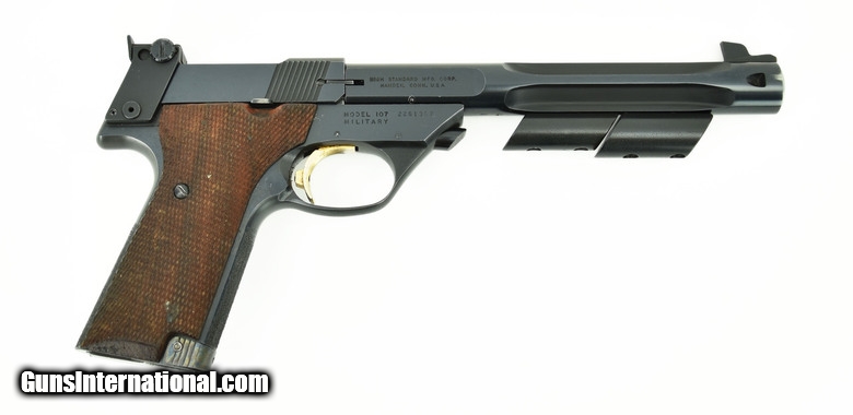 High Standard 107 Mil Supermatic Trophy .22LR caliber pistol. Supermatic Trophy 7 ¼” Target model with barrel weights. Excellent condition.