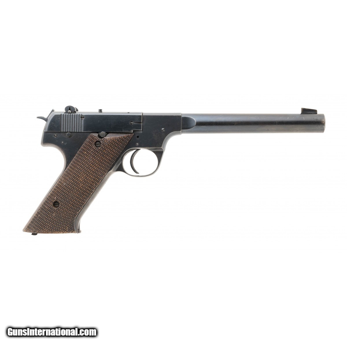 Target pistol with a 6.75"" heavy barrel. The bore is excellent with strong rifling. The action works perfectly. The metal has 95% of its original blue finish. Overall condition is near excellent.