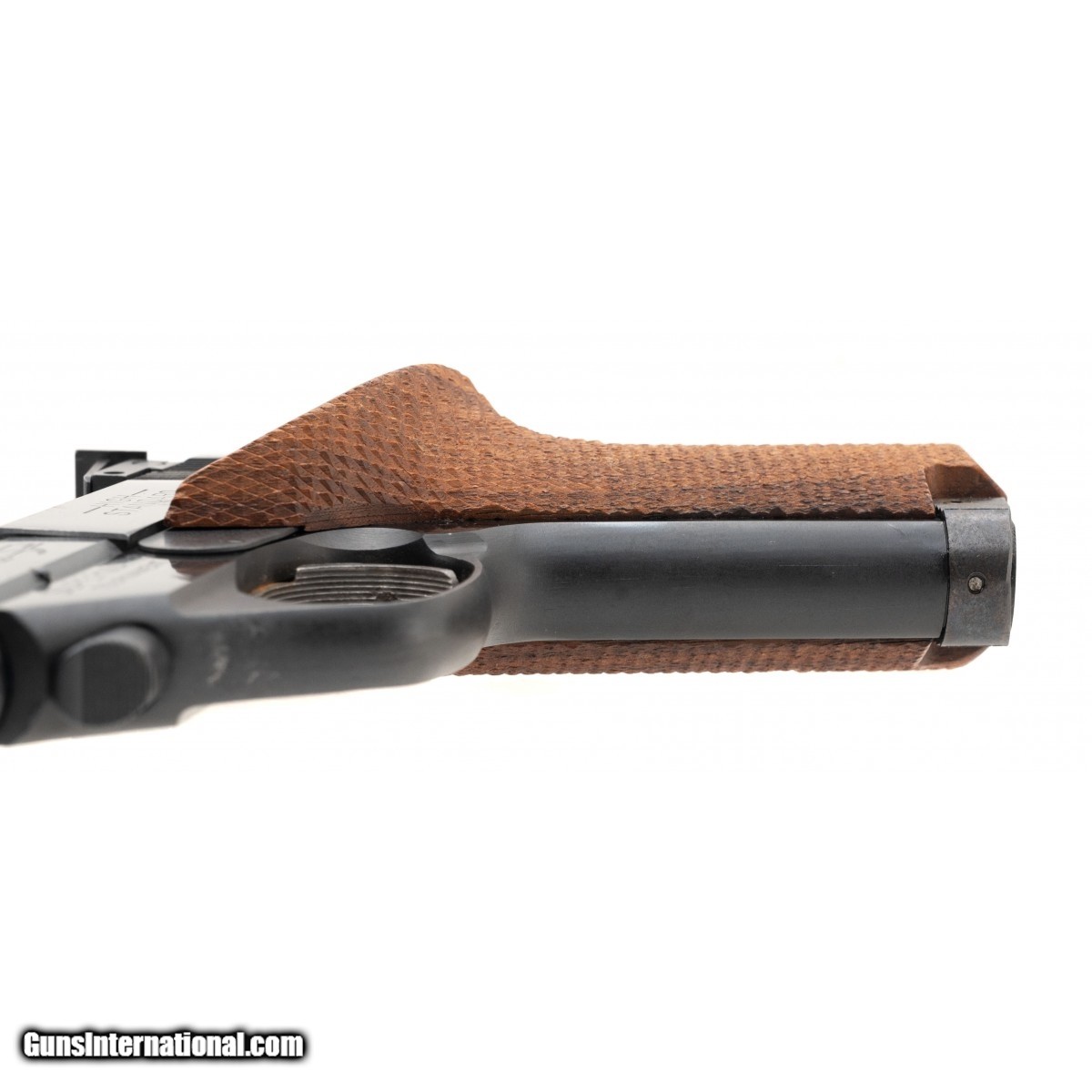 SN:1925964. made circa 1960's .22long rifle with a 6.75" barrel. Bore is in excellent condition. Full size target pistol with adjustable rear sights and thumb grove wooden grips. Overall condition is very good.