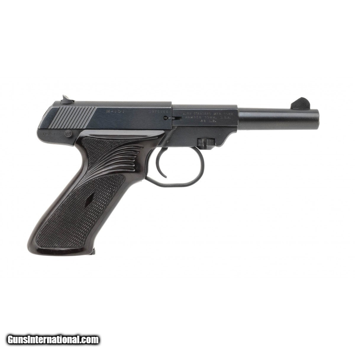 Description: "SN: 1975864. Made in 1968, .22LR with a 4.5"" barrel. Semi-auto plinking pistol. Finish and grips are in very good condition with minimal wear noted. Overall condition is very good. SOLD |