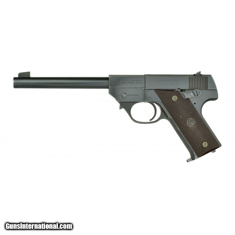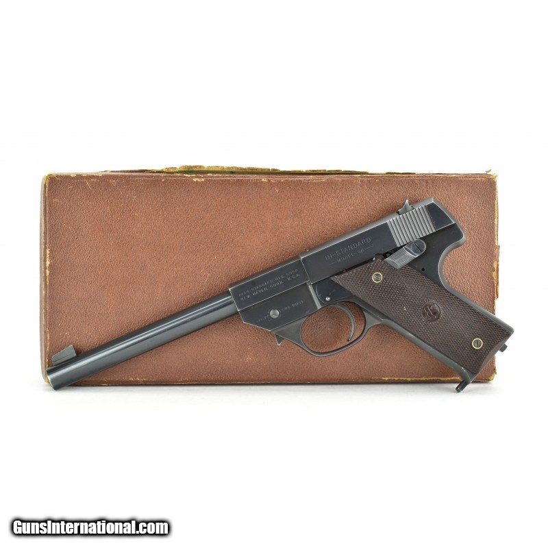 High Standard GB .22 LR caliber pistol. Early semi-auto manufactured late 1940’s-early 1950’s with 6 ¾" barrel. Excellent condition with box (box is a bit tatty).