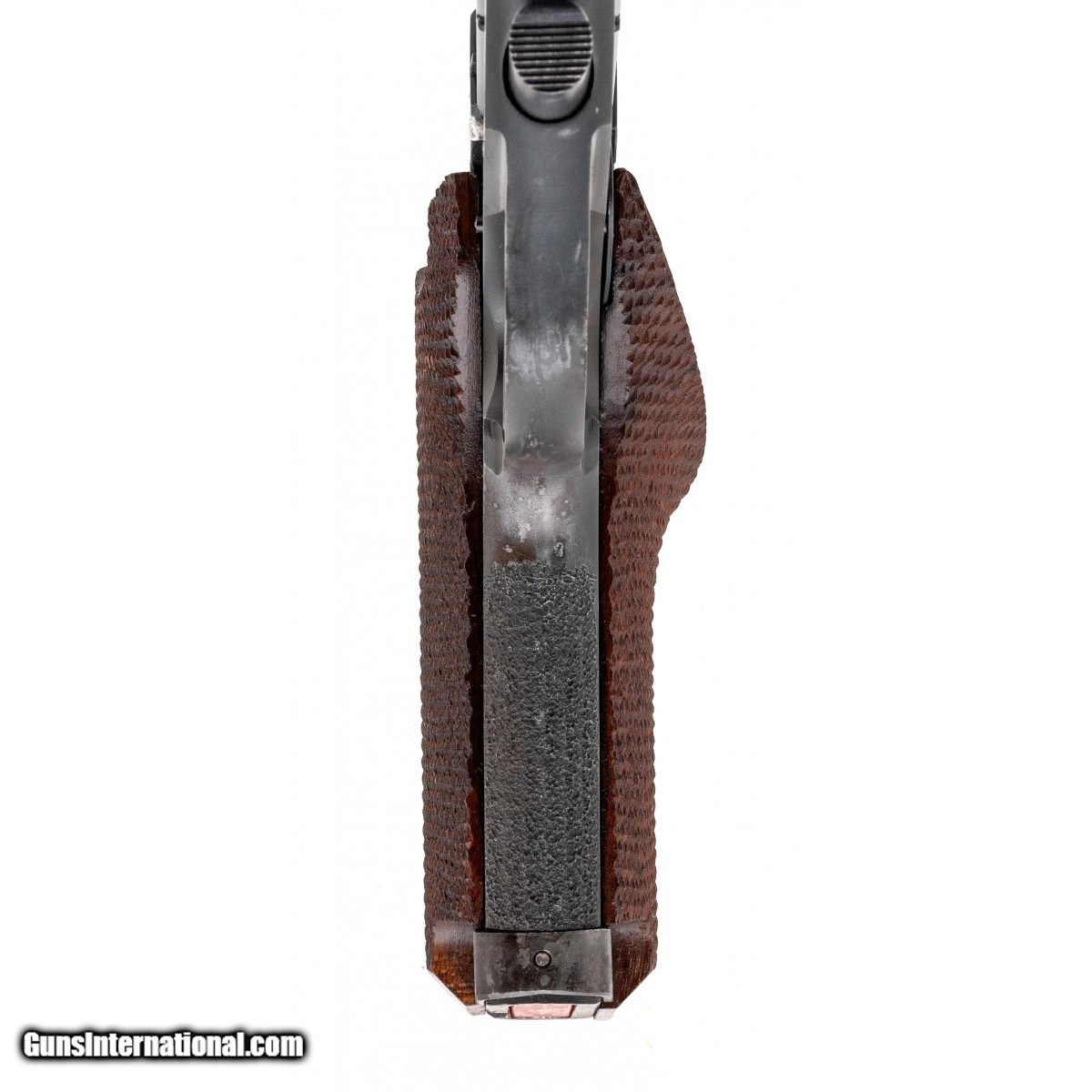 Description: " SN:1851102. Made in 1946 .22 Long rifle with a 5.5"" barrel. Bore is excellent. Semi-auto pistol with 95% original finish, has a bit of muzzle wear. Has original wood grips in excellent condition. Overall condition is very good. Consignment. SOLD |
