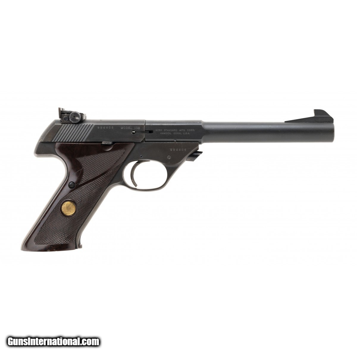 Description: " One of 102 U.S. marked target pistols. In 1959 the U.S. government ordered 102 Hi-Standard Tournaments for training. U.S. is marked on the side of the frame. The bore is excellent. the grips are very good plus. The pistol has 98% of its original finish. Overall this is an excellent and rare pistol! SOLD Curio/Relic: Yes |