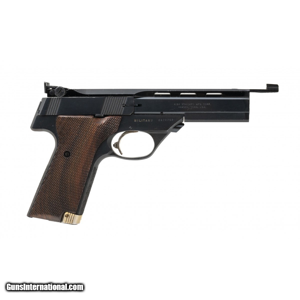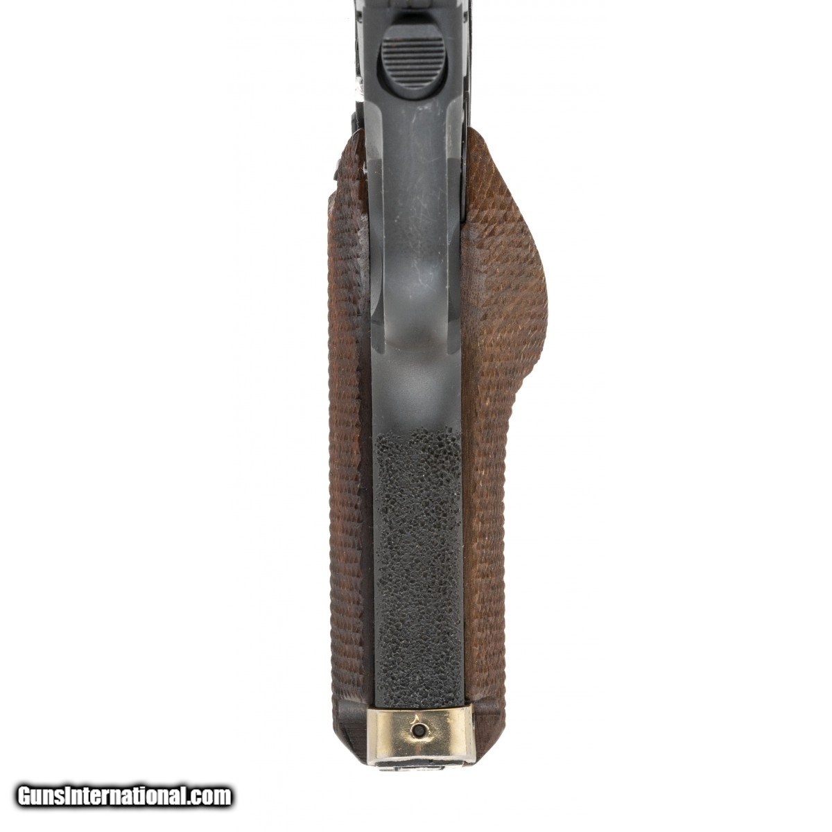 Top of the line target pistol, made in Hamden, Conn. Has a 4.5"" barrel and an extended front sight rib. Shows some wear to the finish, overall very good condition.