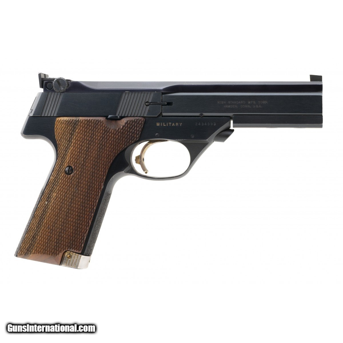 SN: 2434393. Top quality target pistol with 4.5"" barrel and ""Military"" style grip. Made in Hamden, CT. Excellent condition.