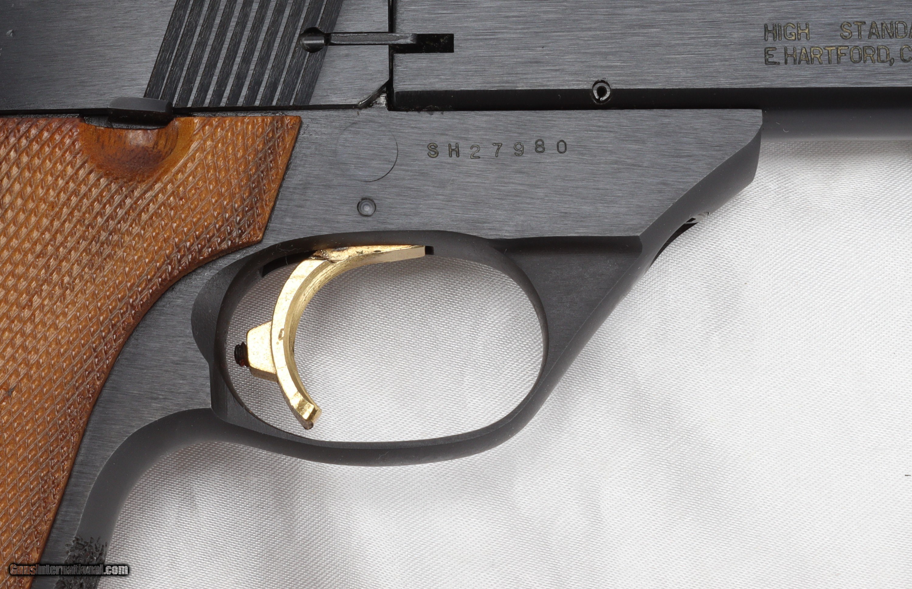 Description: Hi-Standard "Victor" Semi-Auto Pistol in .22LR. SN #SH27980. NEW IN THE BOX AND UNFIRED. 5 1/2" Vent Ribbed Barrel. MUCH SOUGHT AFTER. 1 magazine Original Box with Paperwork. Weight: 3.01 lbs. Trigger Pull: 2 1/2 lbs. Ships to Lower 48 W/ Insurance $40.00. SOLD Handgun Caliber: .22 Long Rifle Manufacturer: High Standard Model: Victor Serial Number: SH27980 Barrel Length: 5 1/2 Condition: New In Box Metal Condition: New In Box Wood Condition: New In Box Action: Semi Auto Finish: Blue Weight: 3.01 lbs. Manufacture Date: 1981-84 |