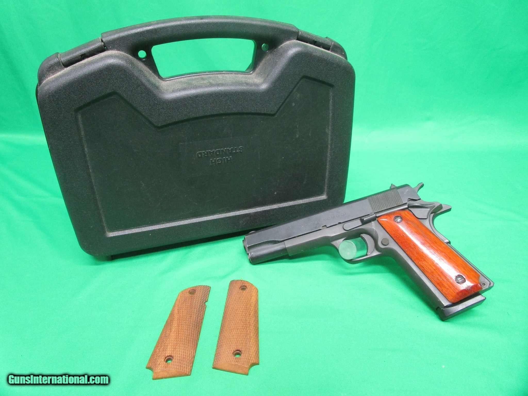 Description: Guns Listing ID: 1103062 We have a used High Standard 1911 semi-automatic pistol for sale. This is chambered in 45 ACP with a 5\" barrel. It comes as shown in pictures with case, extra grips & (1) 7rd magazine. This is in Good Used Condition. Overall we would grade at approx 95% with some scratches and signs of wear. Check out the pictures and feel free to call or email with any questions. SOLD Manufacturer: HI-STANDARD Model: 1911 USA Caliber Info: .45 ACP Condition: Used - Non-Certified Barrels: 5 BARREL Finish: BLACK |