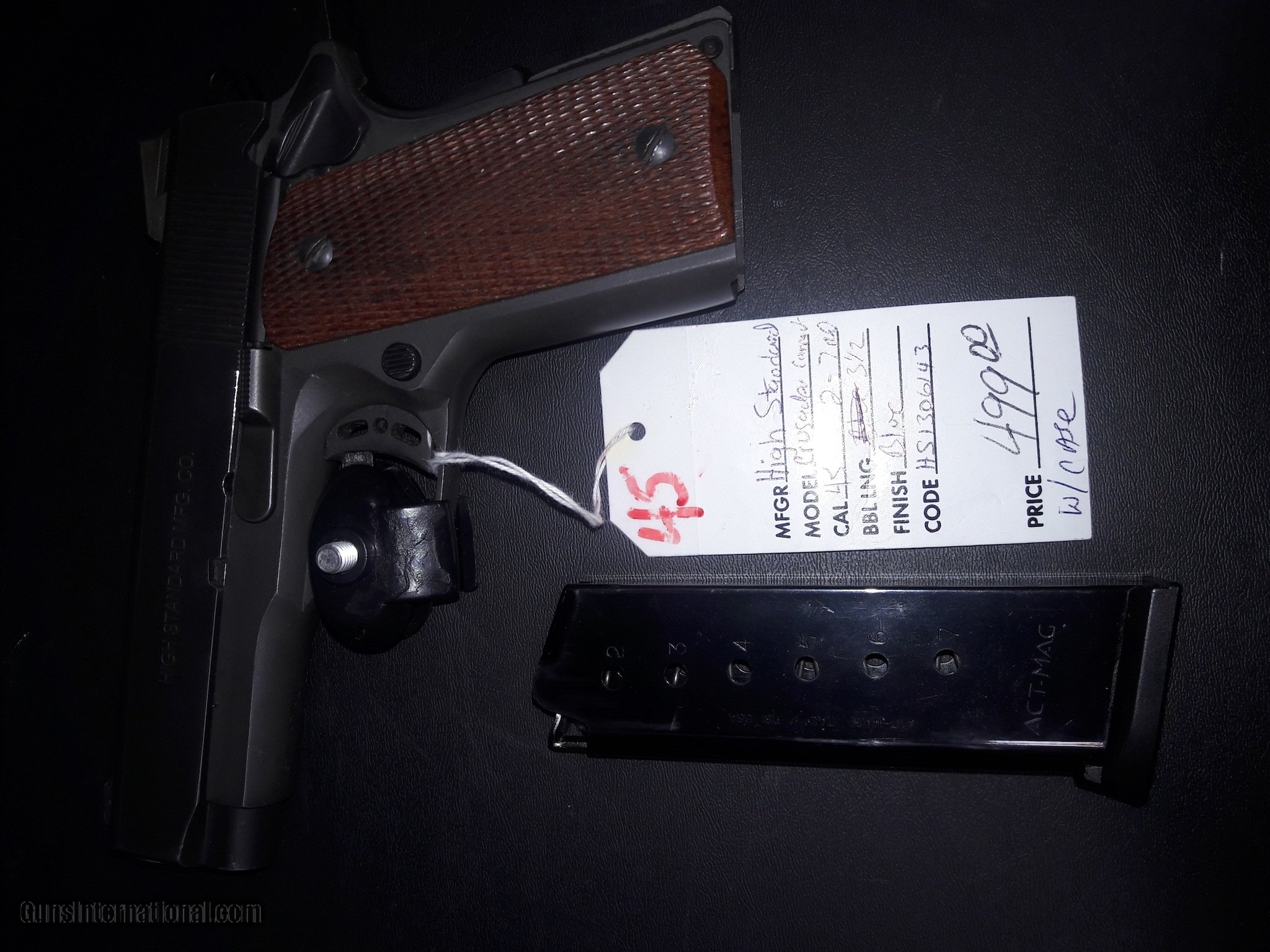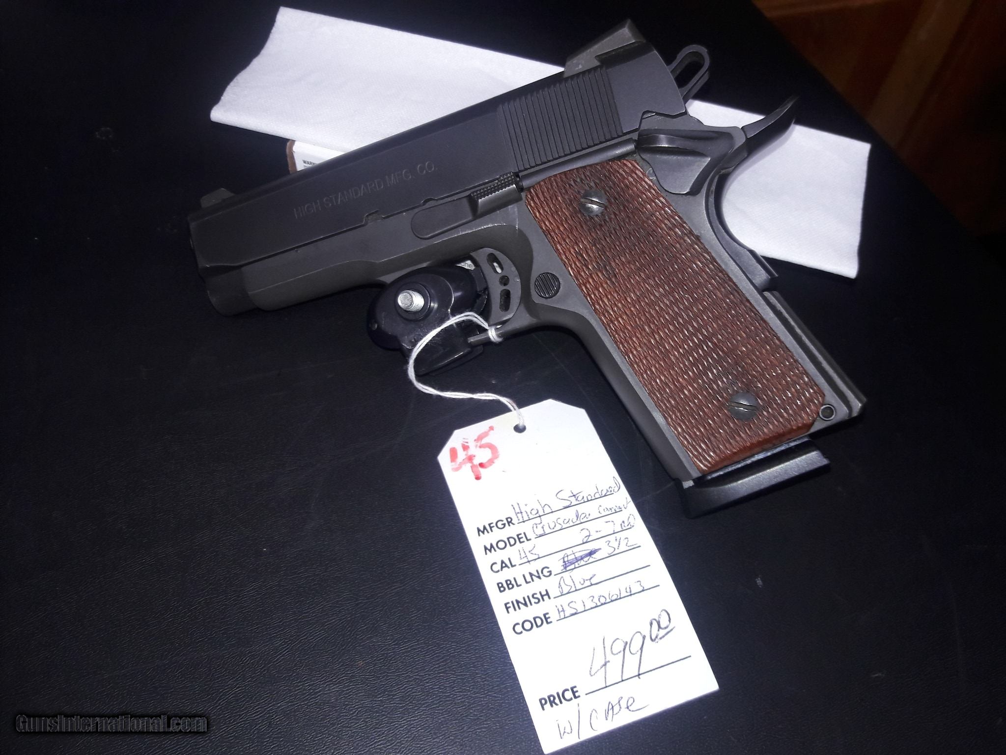 Description: Guns Listing ID: 1037127 Nice gun with case, and 2 - 7 round mags. SOLD Manufacturer: HI-STANDARD Model: crusader compact Caliber Info: .45 ACP Condition: Used - Non-Certified Barrels: 3.5 BARREL Finish: BLACK |