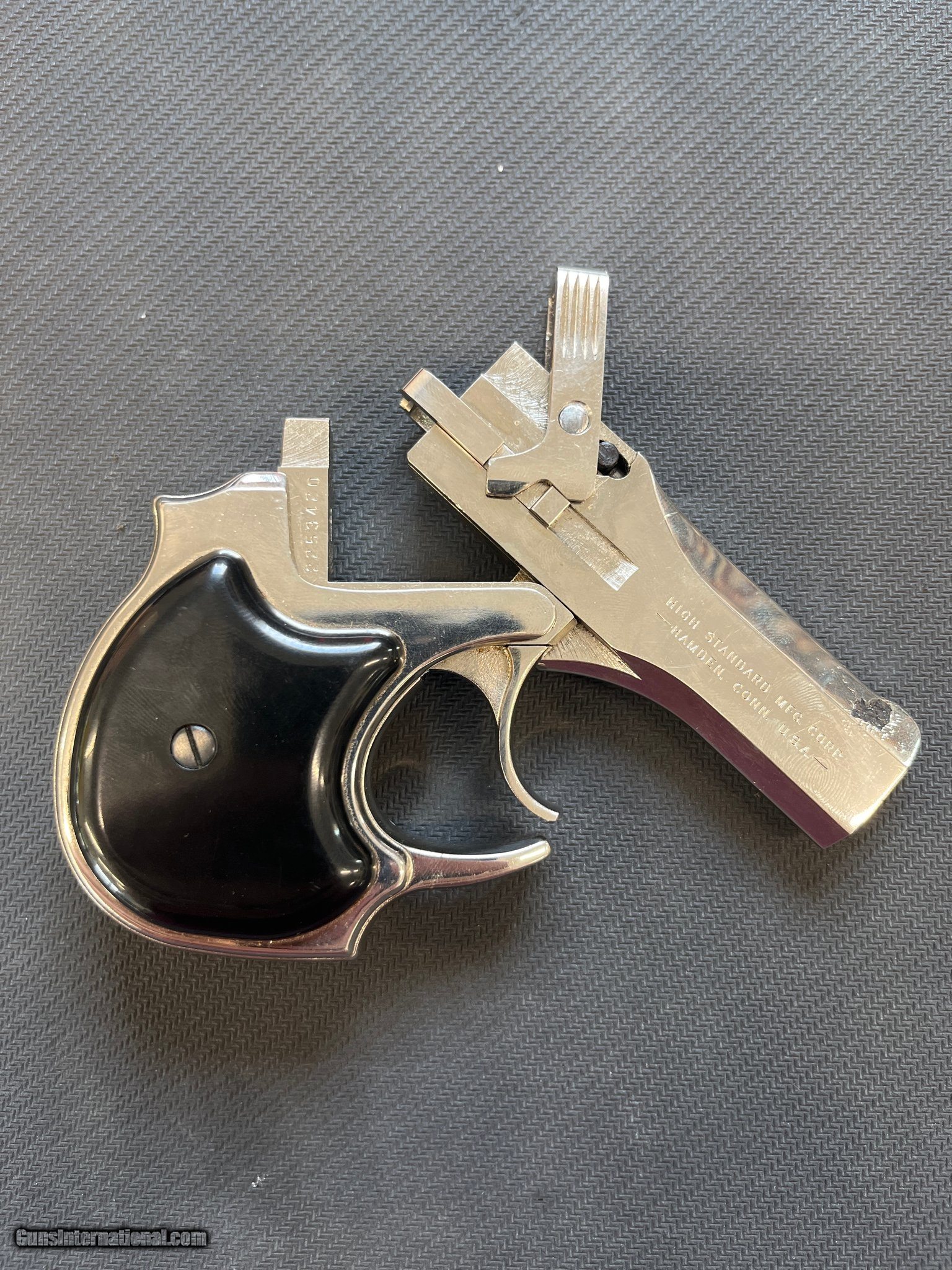 Description: Guns Listing ID: 1368042 User condition gun, finish mostly in good shape other than one little spot, grips also in good shape. Features extractors and a tight lock up SOLD Manufacturer: HI-STANDARD Model: DERRINGER Caliber Info: .22 WMR Condition: Used - Non-Certified Barrels: 3.5 BARREL Finish: NICKEL |