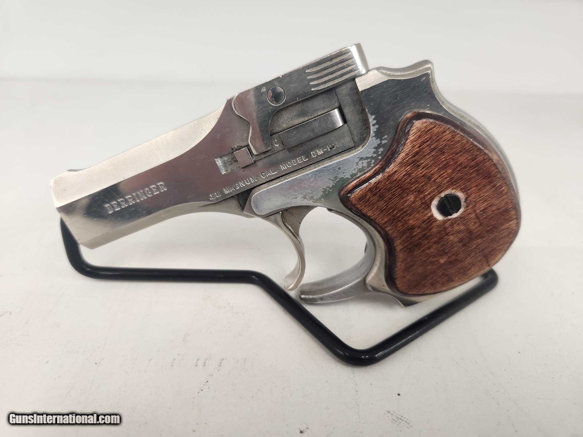 Description: Guns Listing ID: 1119543 High Standard Model- DM-101 Caliber- 22mag Derringer Stainless Wood grip This High Standard derringer is in good condition for its age. The stainless finish is showing some wear and there are some marks on the wood grip around the grip screw. SOLD Manufacturer: HI-STANDARD Model: DM-101 Caliber Info: .22 WMR Condition: Used - Non-Certified Barrels: 3.5 BARREL Finish: STAINLESS |