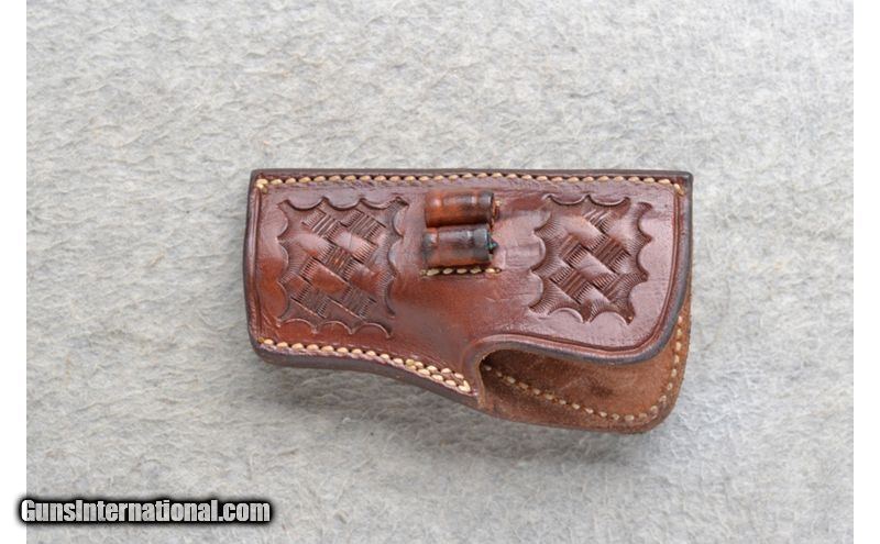 Description: This Hi-Standard Model DM-101 is a 2 shot derringer in .22 Magnum Cal. It has 3.5 inch barrels. Integral blade front and notch rear sights. The grip is a smooth ivory colored hard plastic. It comes with a nice brown leather holster. .22 MAG SOLD Chambers: .22 Magnum 2 shot. Metal Condition: Very good. Bore Condition: Very good. Barrels: 3.5 inch. Weight: 12 oz. Sights: Integral blade front. Integral notch rear. Item Location: Richfield, WI |