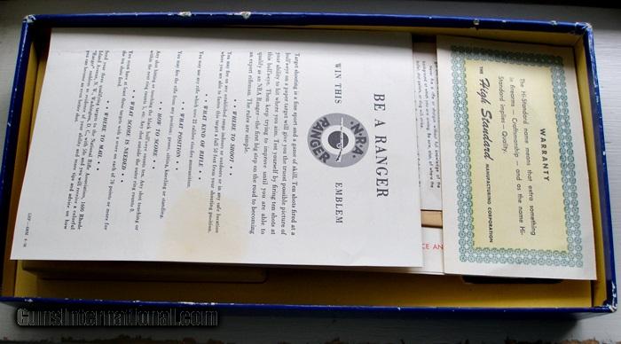 Description: HI STANDARD DURAMATIC 22 CAL PISTOL, HAMDEN CT MFG, 6 1/2 & 4 1/2" BBLS, EJECTORS, STANDARD TRIGGER, BROWN PLASTIC GRIPS, 35OZ, BLADE FRONT, ORIGINAL BOX WITH ALL PAPERS, EXCELLENT, VERY LITTLE USE! SOLD Manufacturer: HI STANDARD Model: DURAMATIC Caliber Info: 22 CAL Ejectors: YES Condition: EXCELLENT, VERY LITTLE USE! Triggers: STANDARD Stock: BROWN PLASTIC GRIPS Weight: 35 OZ Sights: BLADE FRONT, ADJ REAR Case: ORIGINAL BOX WITH ALL PAPERS Item Location: SALT POINT, NY 125787 |