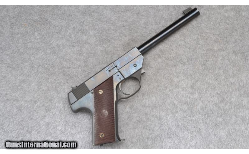 Description: Shows a bit of blue wear at the muzzle with an excellent bore. Shows little use. Complete with box! SOLD Manufacturer: S/N 312XXX Caliber Info: .22 LR Metal Condition: Excellent Bore Condition: Excellent Barrels: 6 3/4 Triggers: Factory Stock: Checkered Brown Plastic Grips Weight: 35 OZ Sights: Patridge Front - Notch Rear Item Location: Wheeling, WV |