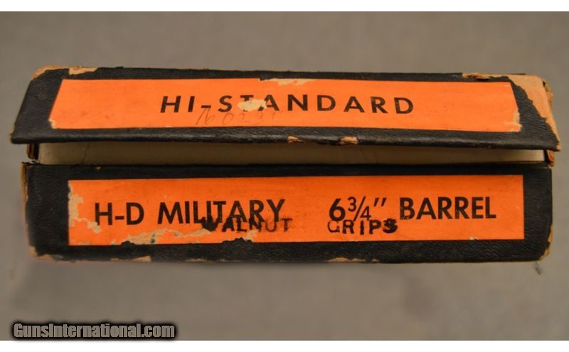 Description: Hi Standard H-D Military in 22LR. In fantastic shape with few marks and comes with box. SOLD Caliber Info: .22 Long Rifle Metal Condition: Great shape with minor handling marks Wood Condition: Good Bore Condition: Clean Barrels: 6 3/4 Butt Pad: Wood Sights: Adjustable rear Extras: Box included Item Location: Fort Worth, TX |