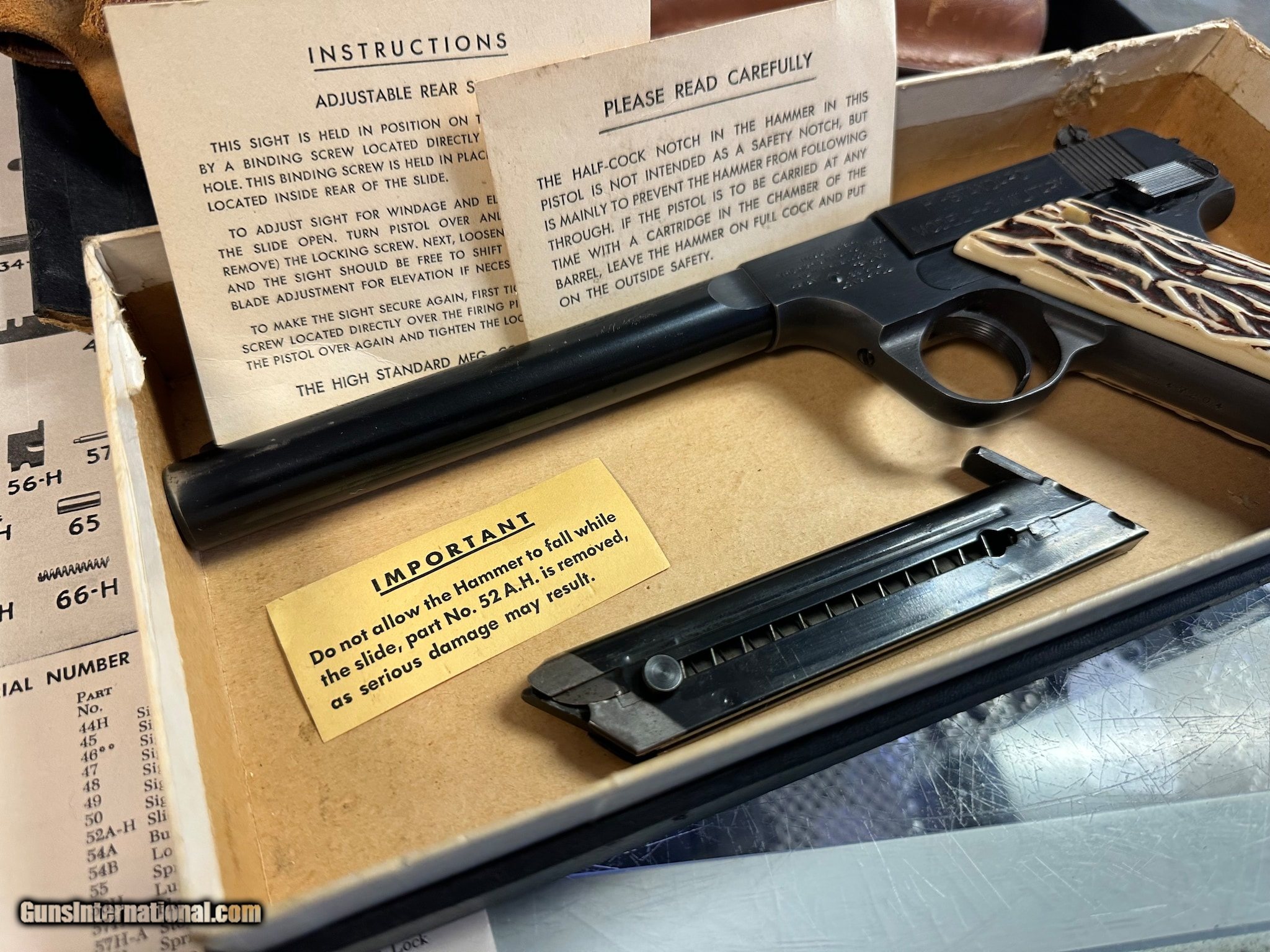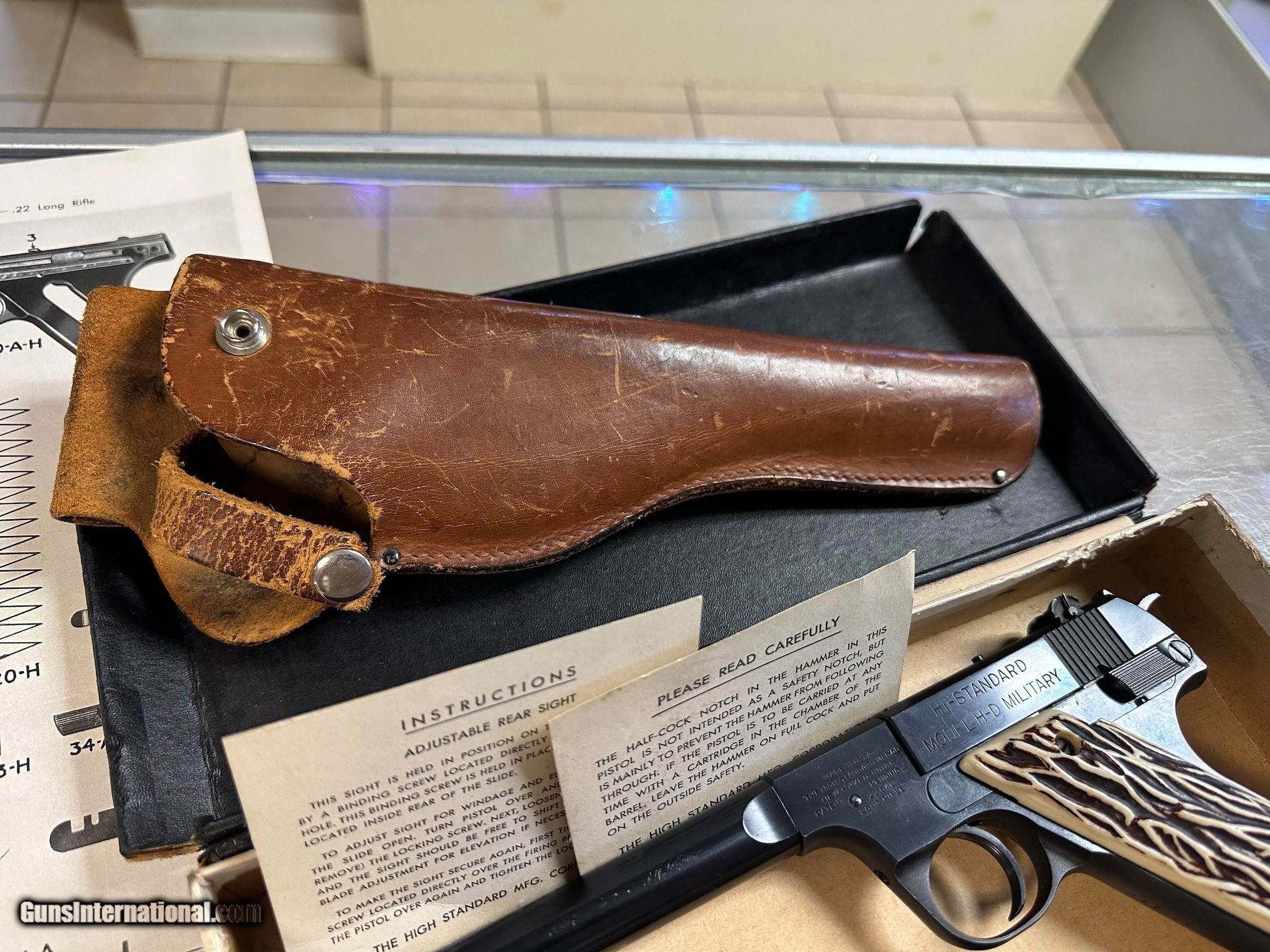 Description: Guns Listing ID: 1057231 HI-STANDARD MODEL MILITARY-HD SEMI-AUTO PISTOL 6.75 INCH BARREL WITH HOLSTER, ORIGINAL BOX AND PAPERWORK NICE!!! EXCELLENT CONDITION! SOME LIGHT WEAR FROM USE. OPERATES AS IT SHOULD. ORIGINAL BOX AND PAPERWORK INCLUDED. 22 LR. LEATHER HOLSTER INCLUDED. SEE PHOTOS. SOLD Manufacturer: HI-STANDARD Model: H-D MILITARY Caliber Info: .22 LR Condition: Used - Non-Certified Barrels: 6.75 BARREL Finish: BLUED |
