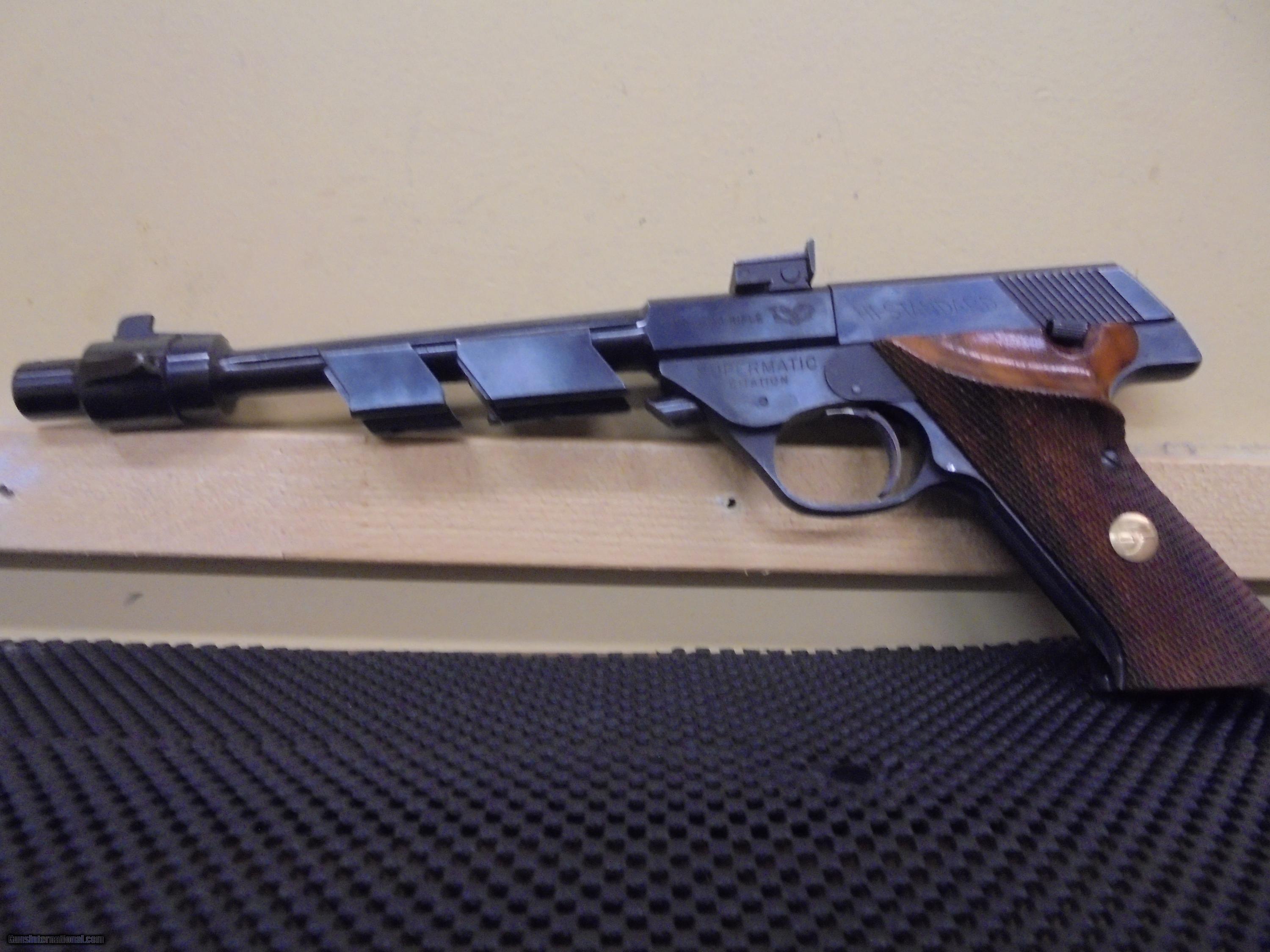 Description: CONSIGNMENT USED GOOD CONDITION HI STANDARD MODEL 102 SUPERMATIC CITATION .22 LR BLUED W/ WOOD GRIPS We also carry Bushnell, Nikon, Vortex, Leupold, Swarovski and Night Force Scopes. ****PLEASE CALL IN THE WITH THE SELLER’S INVENTORY NUMBER IF INQUIRING ABOUT A FIREARM****** WE DO NOT SHIP FIREARMS AND/OR FIREARMS’ PARTS OUT OF THE 50 UNITED STATES, SO DON’T ASK PRICE REFLECTS PAYMENT BY MONEY ORDER or CASHIERS CHECK. A 3% PREMIUM IS ADDED FOR CREDIT CARDS. Shipping is $40 for handgun and $30 for long gun. WE DO OFFER A LAYAWAY PLAN. YOU CAN LAYAWAY FOR 30, 60, OR 90 DAYS. THERE IS A $5.00 CHARGE FOR EVERY 30 DAYS ITEM IS ON LAYAWAY. WE ALSO REQUIRE A 20% DOWN PAYMENT ON LAYAWAY ITEM. LAYAWAYS ARE NON REFUNDABLE. HERE IS HOW THIS PROCESS WORKS. YOU WOULD CALL US AT 540-337-9218 WITH LISTER # TO PURCHASE THE GUN. THEN ONCE I HAVE RECEIVED PAYMENT AND AN FFL (FEDERAL FIREARMS LICENSE) FROM A LICENSED DEALER IN YOUR AREA OF YOUR CHOICE. WE WILL THEN SHIP THE GUN TO THEM. YOU WOULD THEN PICK UP THE GUN AT YOUR LOCAL DEALER AND DO PAPER WORK THERE. Please have your FFL Dealers contact information when you call. DOMINION OUTDOORS 15 ANGELA COURT FISHERSVILLE ,VA 22939 540-337-9218 540-337-2422 fax M – F 9 to 6 ETZ Sat 9 – 4 ETZ ****PLEASE CALL IN THE WITH THE SELLER’S INVENTORY NUMBER**** ***PLANO HARD CASES AVAIABLE FOR PURCHASE $19.99 WITH THE PURCHASE OF A FIREARM.** SOLD |