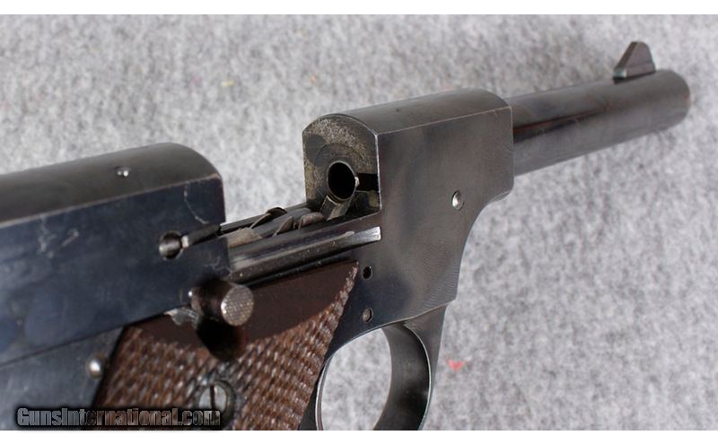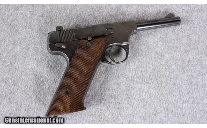 Description: Hi-Standard model A semi auto .22LR handgun. This rimfire handgun is one of the classics known for their high quality pistols. .22 Long Rifle SOLD Metal Condition: "Very Good, Shows some light scratches and bluing wear at the muzzle. Wood Condition: Very Good Bore Condition: Very Good Barrels: 4.5 Butt Pad: Wood Grips Weight: 36 oz. Sights: Adjustable rear with front blade Item Location: East Hartford, CT |