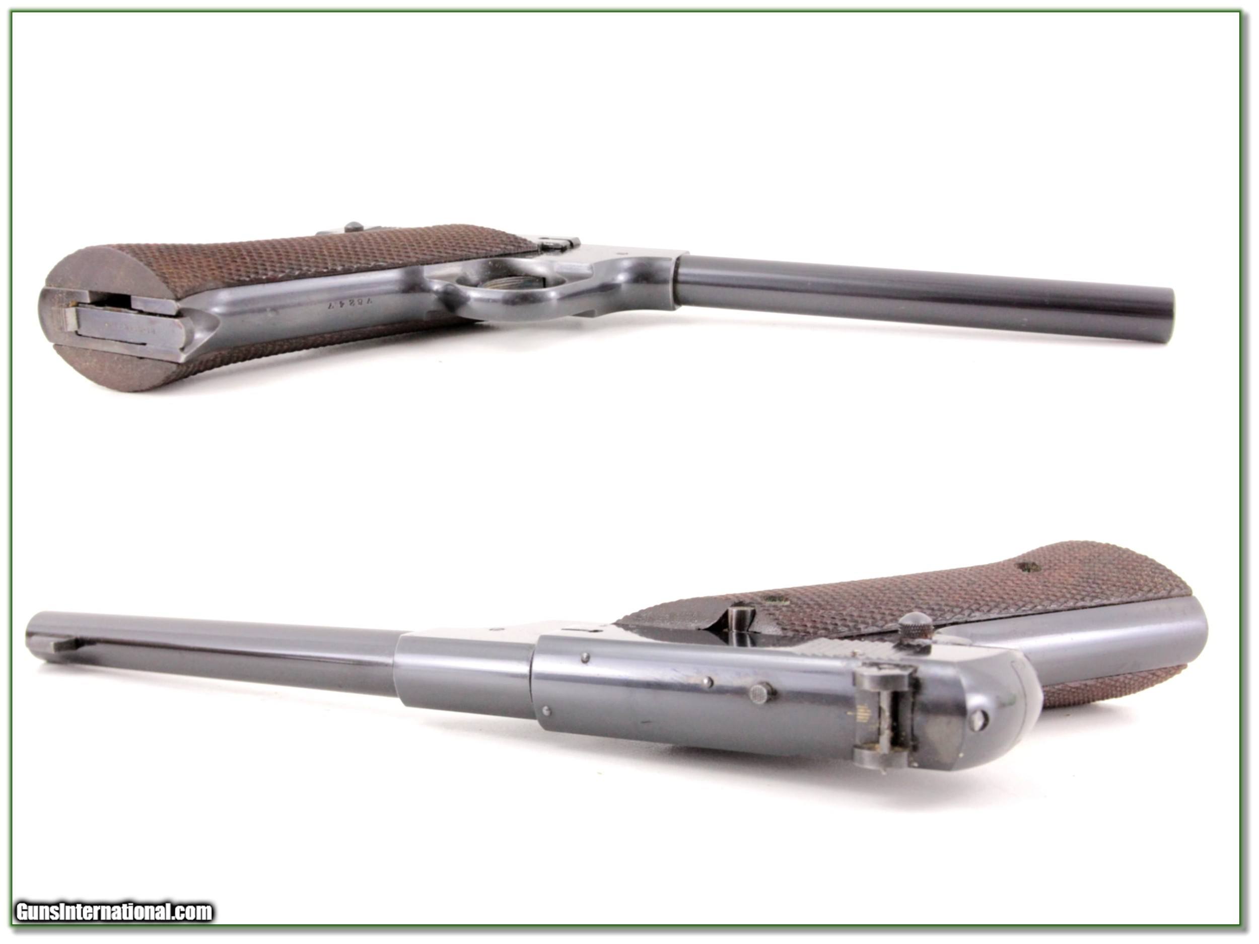 Description: This is an excellent condition Hi-Standard Model A. It has a 7in barrel and comes as seen in original box with papers. The box top sides are missing. It will make a fine addition to your collection. I am selling this one on consignment and as such lay-a-way can’t be used. It does of course have the standard 3-day inspection. Shipping with insurance is $39. Please email me with any questions or larger pictures. (Consign your quality firearms with Shooting Investments for only 12%! Let me know if you have any you would like to sell!) 19-0947 Payment: Payment is by Money Order, Cashiers Check or Personal Check. I can now also accept Credit Cards (MasterCard, Visa, Discover & American Express) with a 3% convenience fee. Shipping: The shipping charge will be listed in each description. It is $39 for most firearms. Some heavy guns or those insured for over $2000 will be higher. Shipments to Alaska and Hawaii are higher because air shipment is required. Most firearms are shipped on Tuesday and Thursday and usually in 5 days of receipt of payment. We package all shipments carefully and insure them. Optics are shipped Priority Mail and most other non-firearm shipments are shipped First Class. Returns: Our return policy is simple. If for any reason you are not pleased with your purchase, you may return your item for a full refund of purchase price. Ammunition cannot be returned. It is important to us that you are happy. Guns cannot be fired or dissembled before returning them and they must be returned in the same condition as received. Notification of a return must occur with-in 3 days of receipt at your dealer. Shipping, convenience and dealer fees are not refundable and are the responsibility of the buyer. Lay-a-way: If needed, we offer a 60 day lay-a-way option on most firearms. It is 1/3 now, 1/3 in 30 days and 1/3 in 60 days. Lay-a-way firearm sales are final and if not completed the first payment cannot be returned. Consigning your firearms with Shooting Investments: We will help you get top dollar for your firearms. While most local guns shops charge 20% or more, our fee is only 12% with a minimum of $75. At your local gun shop it might take months to sell. Selling on-line provides instant access to thousands of interested buyers. You won’t find any other on-line dealer willing to sell your firearms for only 12% or listing every gun on 3 separate s. Selling through an House typically costs the seller 15% and the buyer an addition 15% (so 30%) and you have to wait several months to sell and longer to receive funds. If properly priced, we will sell your firearms in a few weeks. Send us an email or give us a call and we’ll explain how easy it is for you to get top dollar. Trading: Trading for use is really just buying your gun to re-sell. If you have a gun you want to trade, please email a picture and we will let you know what we can give or it. You will always get more if we sell it for you on consignment. Help for California Buyers: We are happy to ship to California. It is the buyer’s responsibility to make sure any item you buy is legal in your state. We are also happy to help with your purchase of a firearm from someone other than us. If you see a gun you would like to buy but the seller can’t or won’t ship to California they can ship to use and we’ll then ship it to your California dealer. The cost for this service is only $30 + shipping. Let us know if we can help! SOLD |
