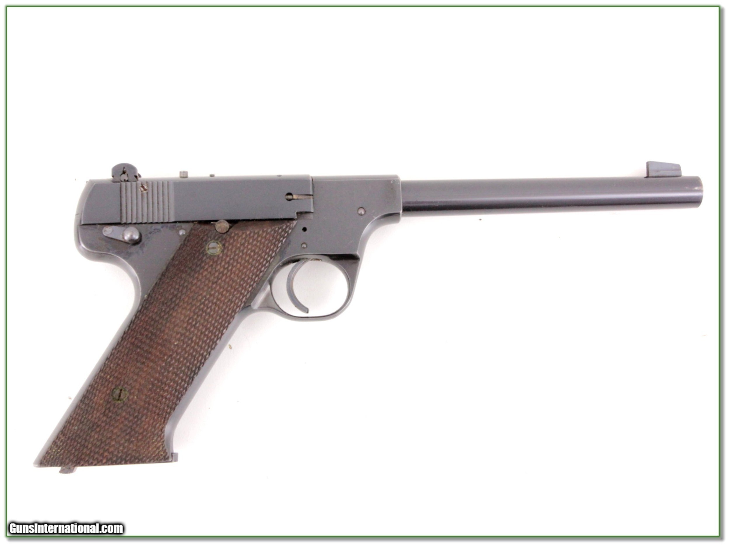 Description: This is an excellent condition Hi-Standard Model A. It has a 7in barrel and comes as seen in original box with papers. The box top sides are missing. It will make a fine addition to your collection. I am selling this one on consignment and as such lay-a-way can’t be used. It does of course have the standard 3-day inspection. Shipping with insurance is $39. Please email me with any questions or larger pictures. (Consign your quality firearms with Shooting Investments for only 12%! Let me know if you have any you would like to sell!) 19-0947 Payment: Payment is by Money Order, Cashiers Check or Personal Check. I can now also accept Credit Cards (MasterCard, Visa, Discover & American Express) with a 3% convenience fee. Shipping: The shipping charge will be listed in each description. It is $39 for most firearms. Some heavy guns or those insured for over $2000 will be higher. Shipments to Alaska and Hawaii are higher because air shipment is required. Most firearms are shipped on Tuesday and Thursday and usually in 5 days of receipt of payment. We package all shipments carefully and insure them. Optics are shipped Priority Mail and most other non-firearm shipments are shipped First Class. Returns: Our return policy is simple. If for any reason you are not pleased with your purchase, you may return your item for a full refund of purchase price. Ammunition cannot be returned. It is important to us that you are happy. Guns cannot be fired or dissembled before returning them and they must be returned in the same condition as received. Notification of a return must occur with-in 3 days of receipt at your dealer. Shipping, convenience and dealer fees are not refundable and are the responsibility of the buyer. Lay-a-way: If needed, we offer a 60 day lay-a-way option on most firearms. It is 1/3 now, 1/3 in 30 days and 1/3 in 60 days. Lay-a-way firearm sales are final and if not completed the first payment cannot be returned. Consigning your firearms with Shooting Investments: We will help you get top dollar for your firearms. While most local guns shops charge 20% or more, our fee is only 12% with a minimum of $75. At your local gun shop it might take months to sell. Selling on-line provides instant access to thousands of interested buyers. You won’t find any other on-line dealer willing to sell your firearms for only 12% or listing every gun on 3 separate s. Selling through an House typically costs the seller 15% and the buyer an addition 15% (so 30%) and you have to wait several months to sell and longer to receive funds. If properly priced, we will sell your firearms in a few weeks. Send us an email or give us a call and we’ll explain how easy it is for you to get top dollar. Trading: Trading for use is really just buying your gun to re-sell. If you have a gun you want to trade, please email a picture and we will let you know what we can give or it. You will always get more if we sell it for you on consignment. Help for California Buyers: We are happy to ship to California. It is the buyer’s responsibility to make sure any item you buy is legal in your state. We are also happy to help with your purchase of a firearm from someone other than us. If you see a gun you would like to buy but the seller can’t or won’t ship to California they can ship to use and we’ll then ship it to your California dealer. The cost for this service is only $30 + shipping. Let us know if we can help! SOLD |