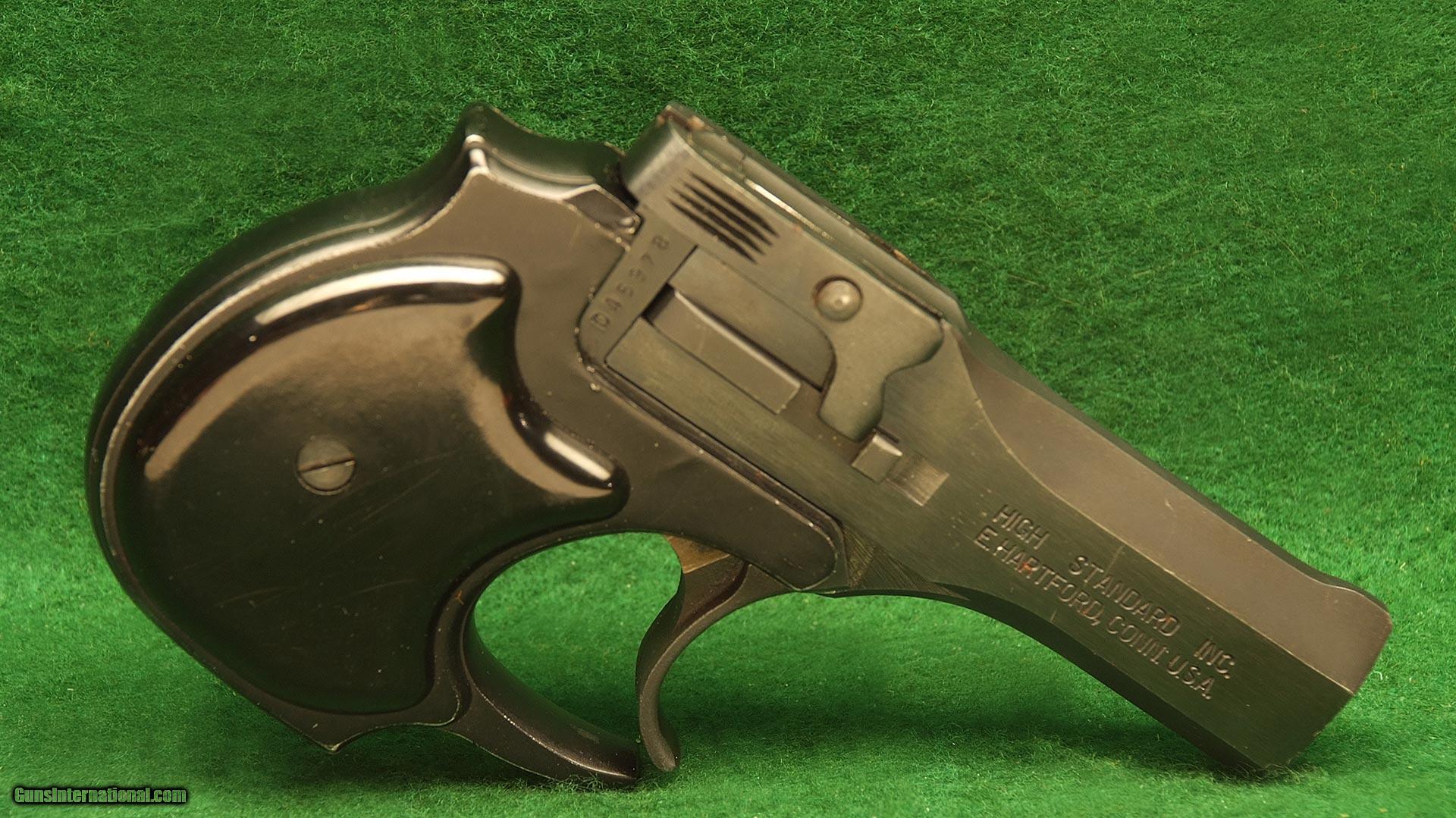 Description: This is a nice example of the Hi Standard DM 101 22 Magnum Derringer. The bores are bright with strong lands and grooves. The gun is mechanically tight. The finish shows only light handling wear at the high points. SOLD Manufacturer: Hi Standard Model: Derringer Caliber Info: 22 Mag Barrels: 3 1/2 |